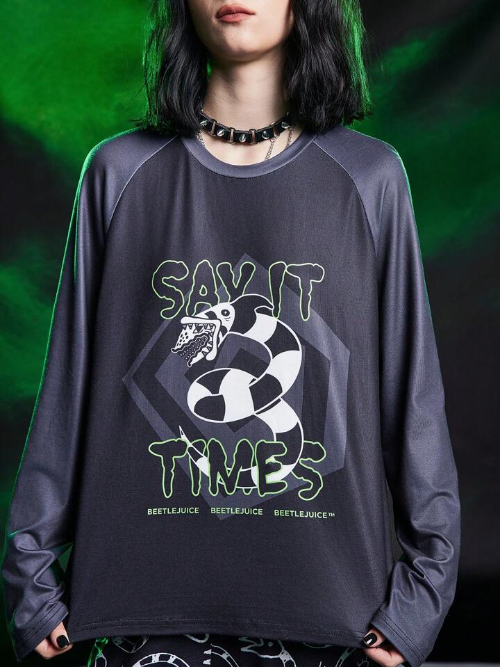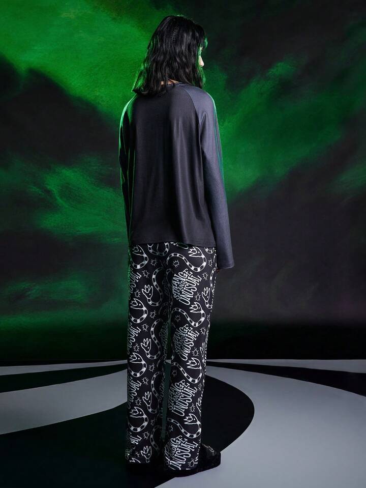 Beetlejuice | ROMWE Ensemble pyjama avec haut manches longues raglan et pantalon avec imprimé graphique de dessin animé pour femme