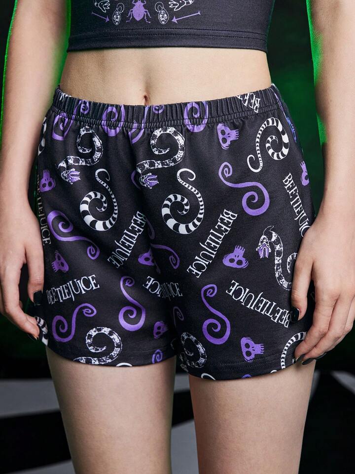 Beetlejuice | ROMWE Ensemble de pyjama avec débardeur à motif graphique de dessin animé et short pour femmes