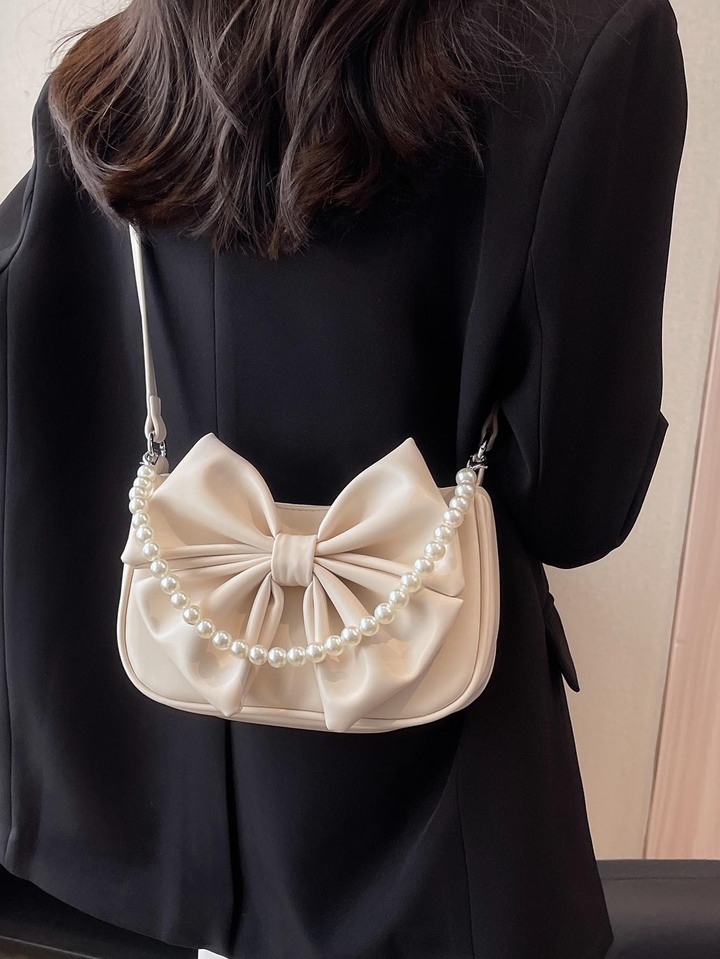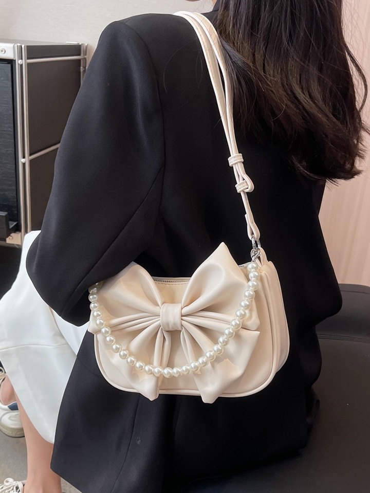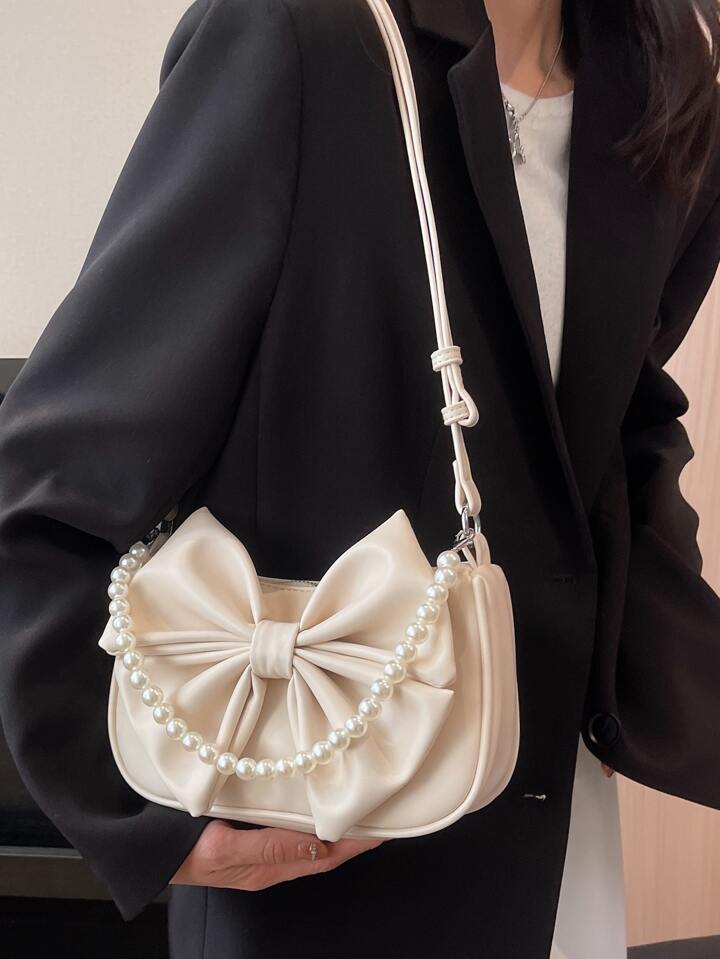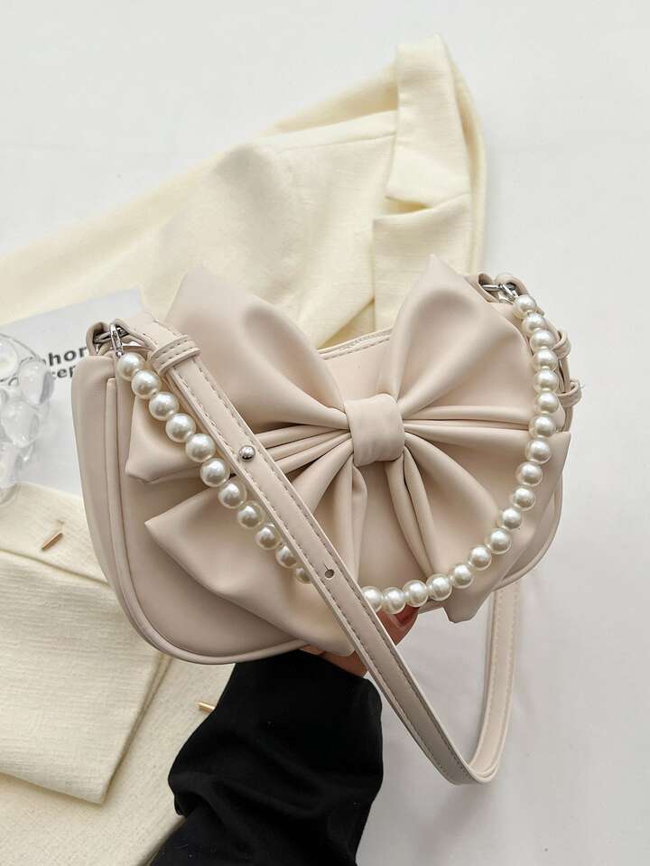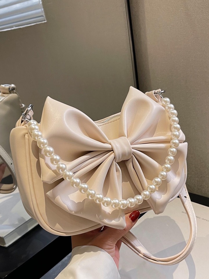 Sac Hobo beige Avec Nœud À Fausse Perle Avec Poignée Pour Quotidien