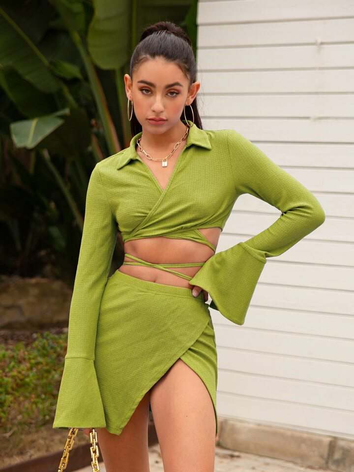 Top court à manches cloche à nœud & Jupe