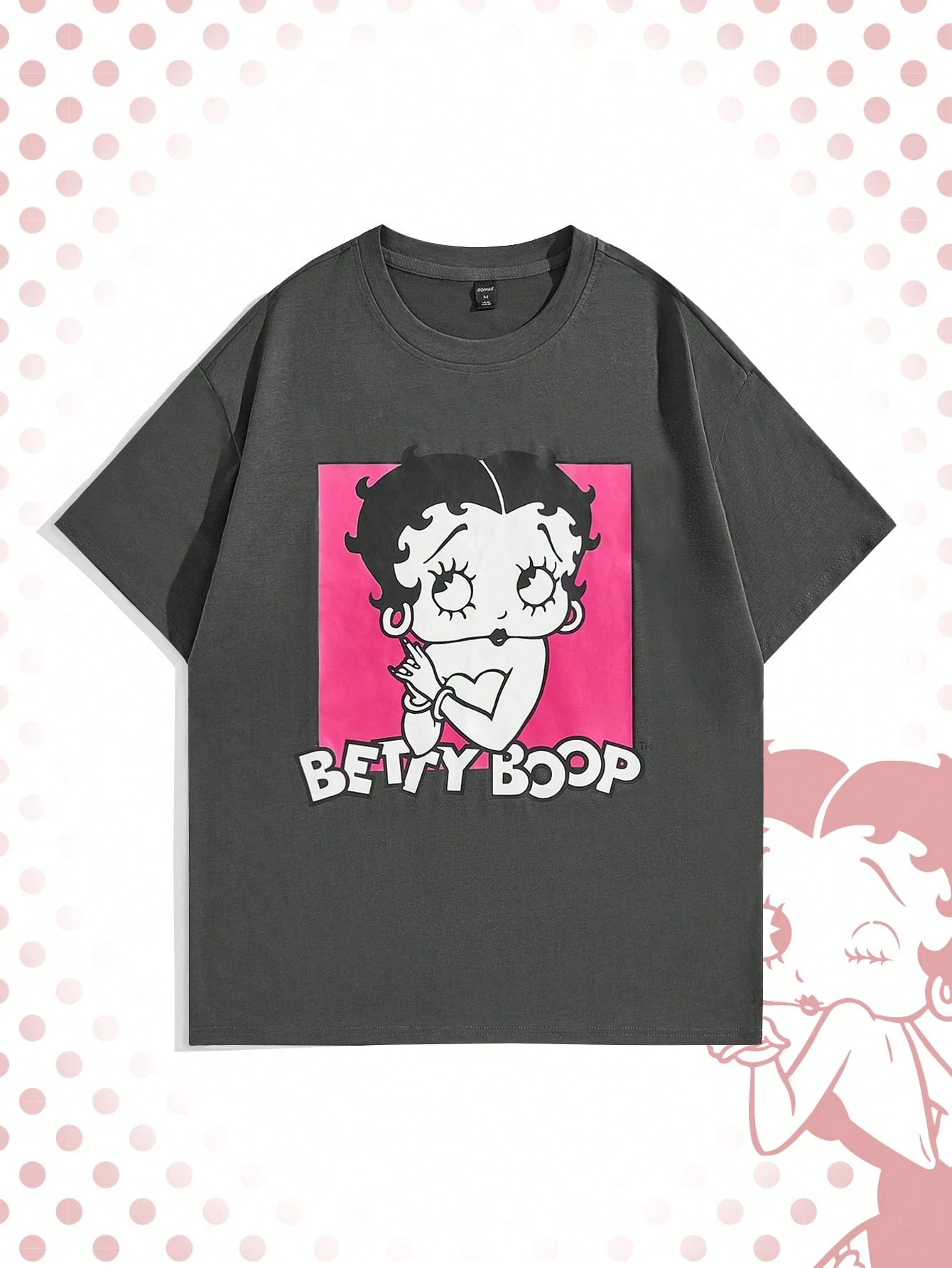 Betty Boop | ROMWE T-shirt ample d'été pour hommes, style décontracté, quotidien et urbain, avec graphiques de personnages de bande dessinée et lettres