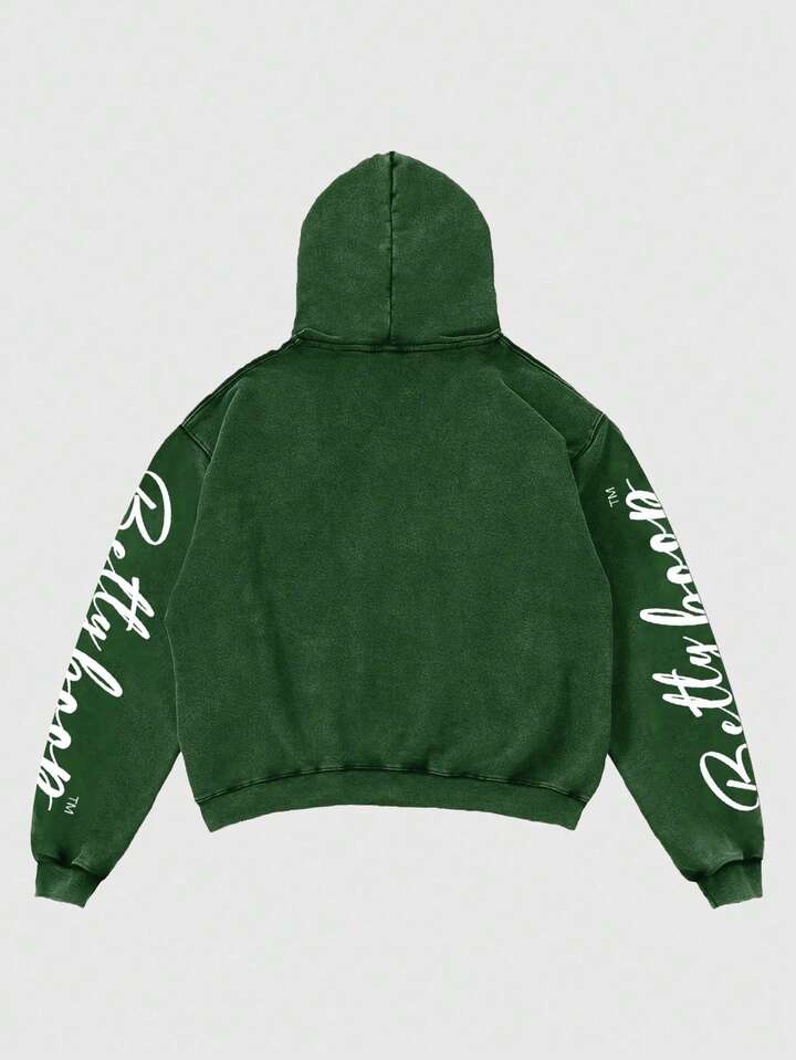 Betty Boop | ROMWE sweat-shirt à capuche ample avec lettres et chiffres lavés pour hommes