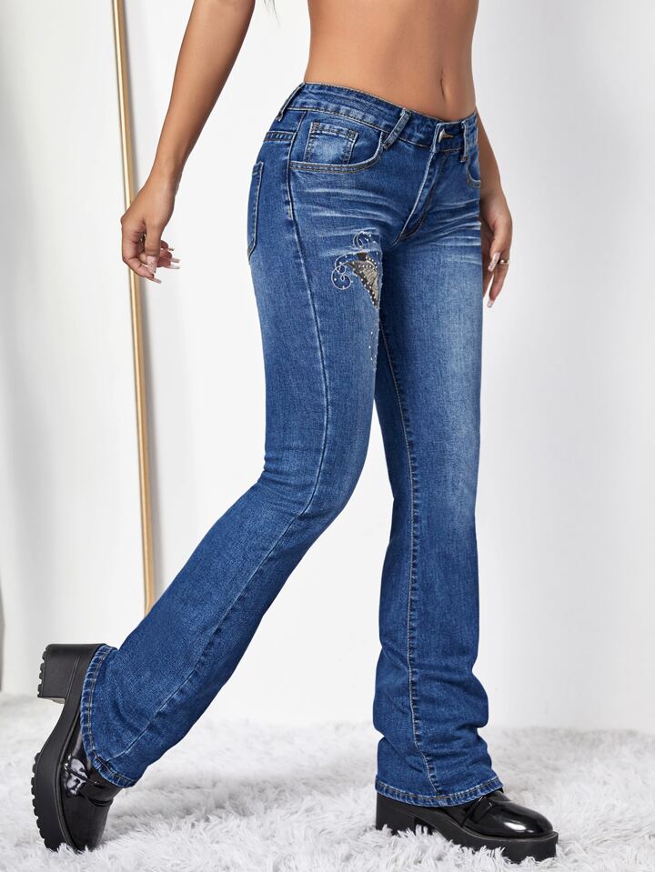 Jean évasé délavé à broderie