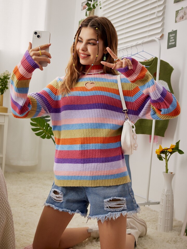 Pull à rayures avec découpe cœur