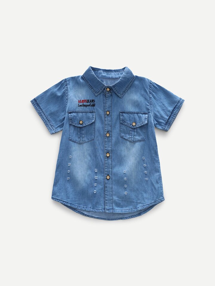 Garçon Blouse en jean brodée lettre