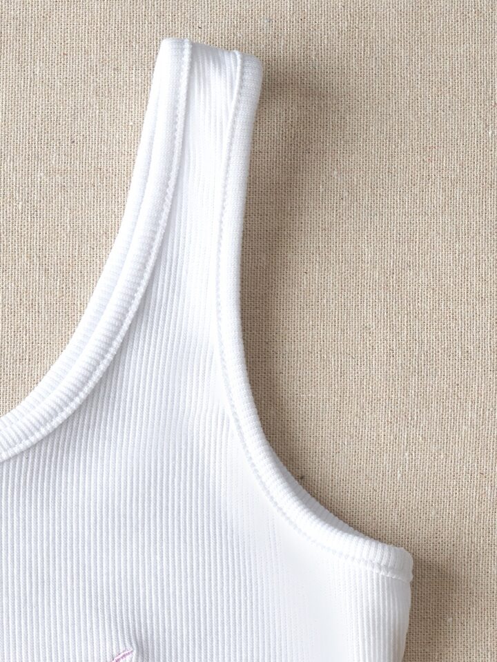 Top côtelé avec broderie