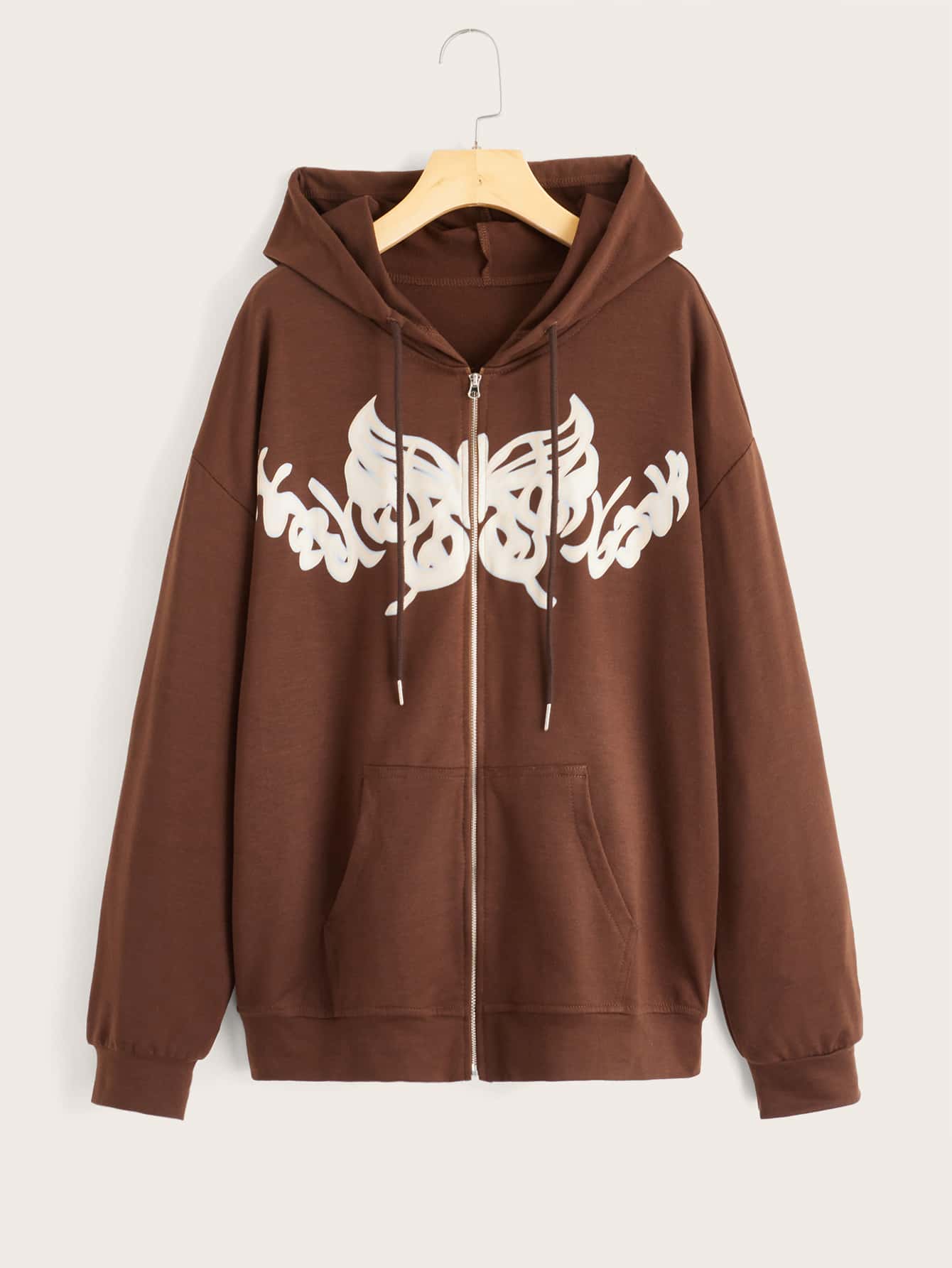 Sweat-shirt à capuche papillon zippé à poche à cordon