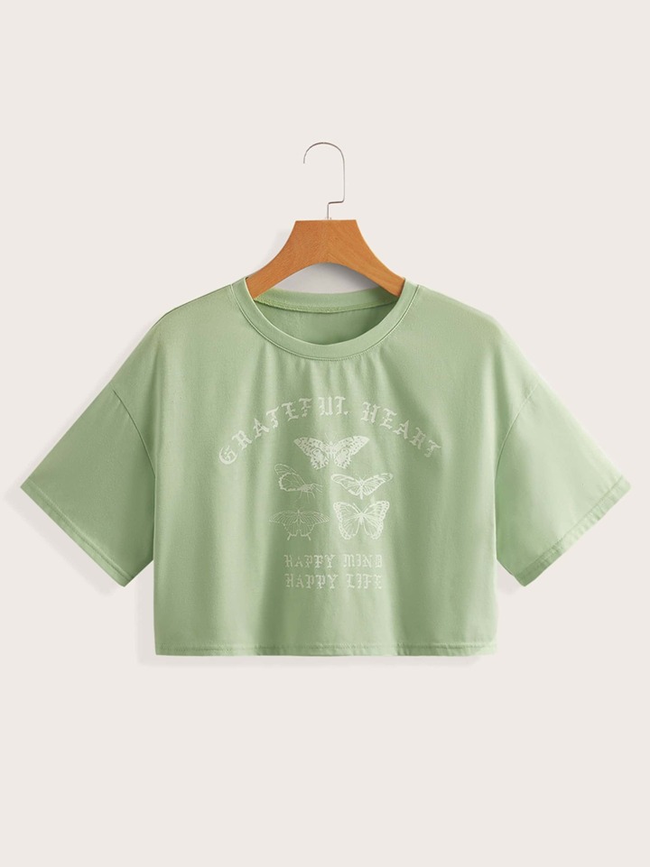 T-shirt court à papillon à lettres