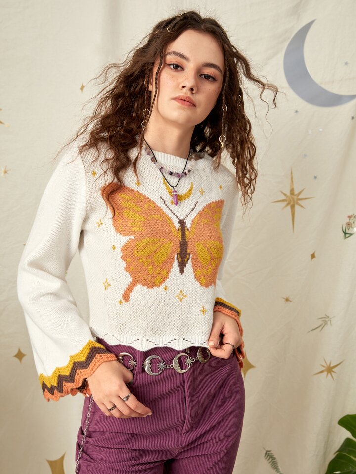 Pull à motif papillon festonné