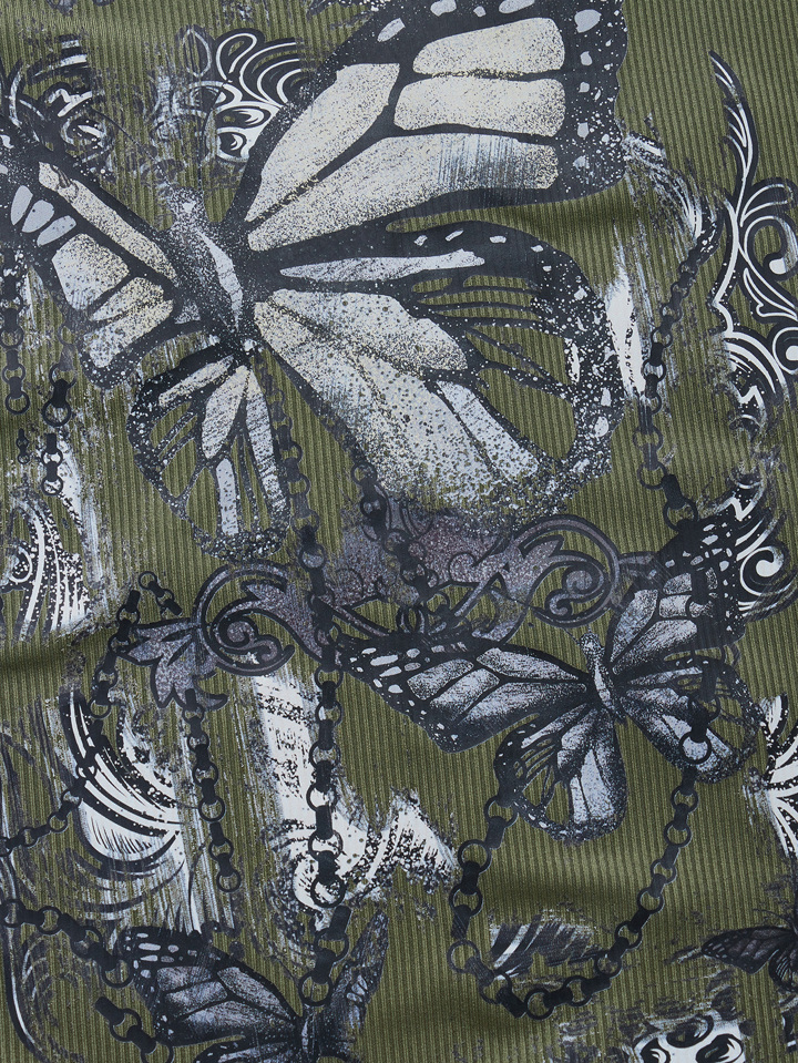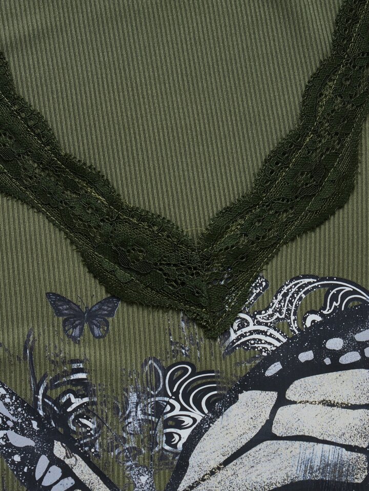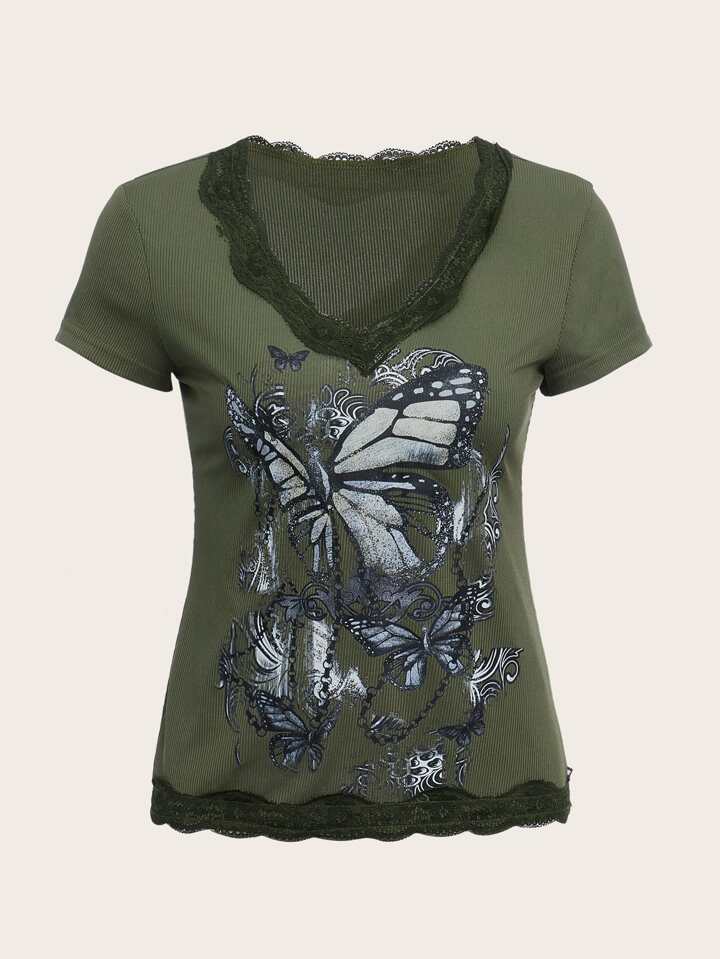 T-shirt à imprimé papillon en dentelle