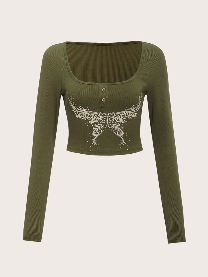 T-shirt court à imprimé papillon