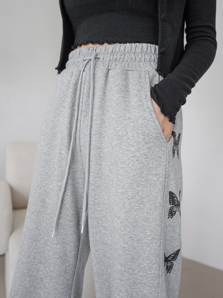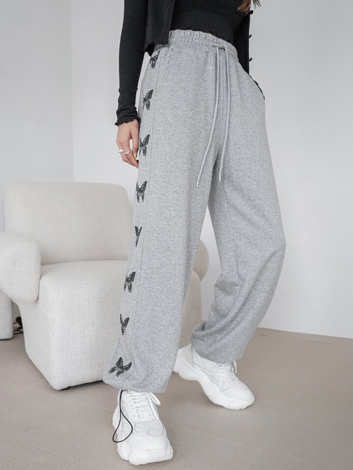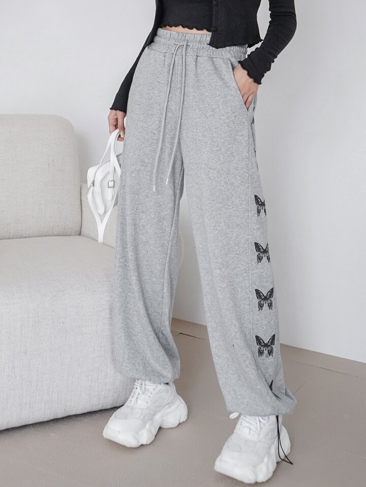 Pantalon de jogging à cordon de serrage imprimé papillon, joggers pour femmes en automne