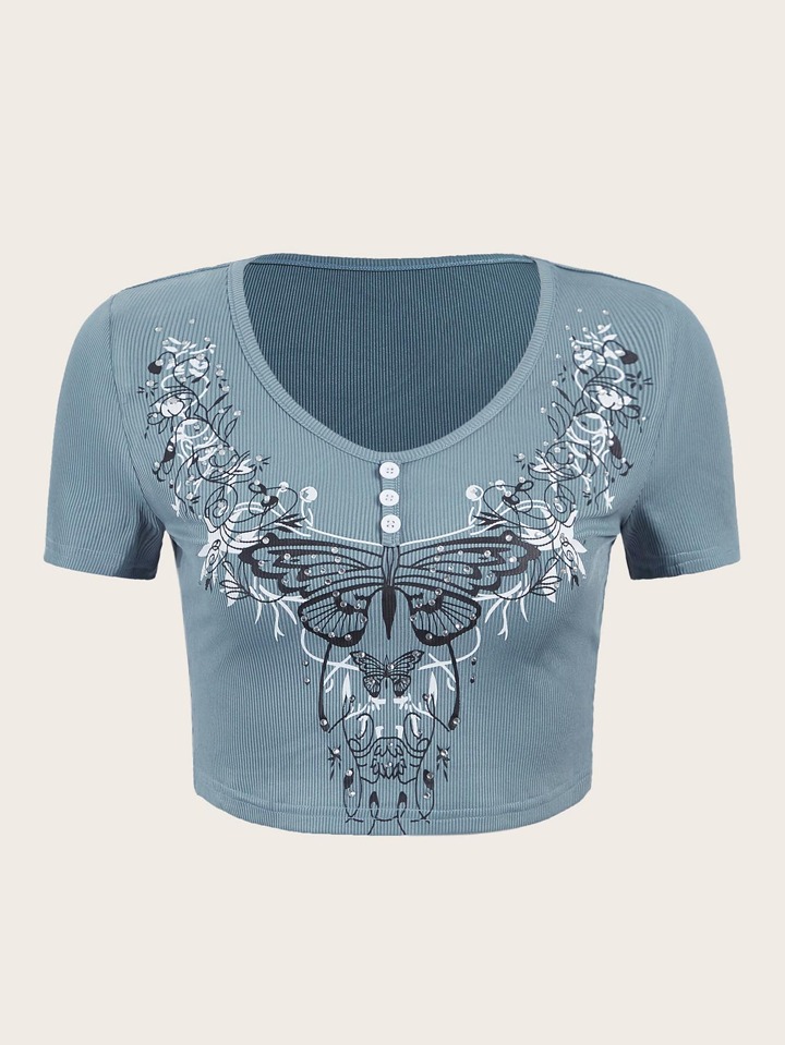 T-shirt à imprimé papillon avec strass