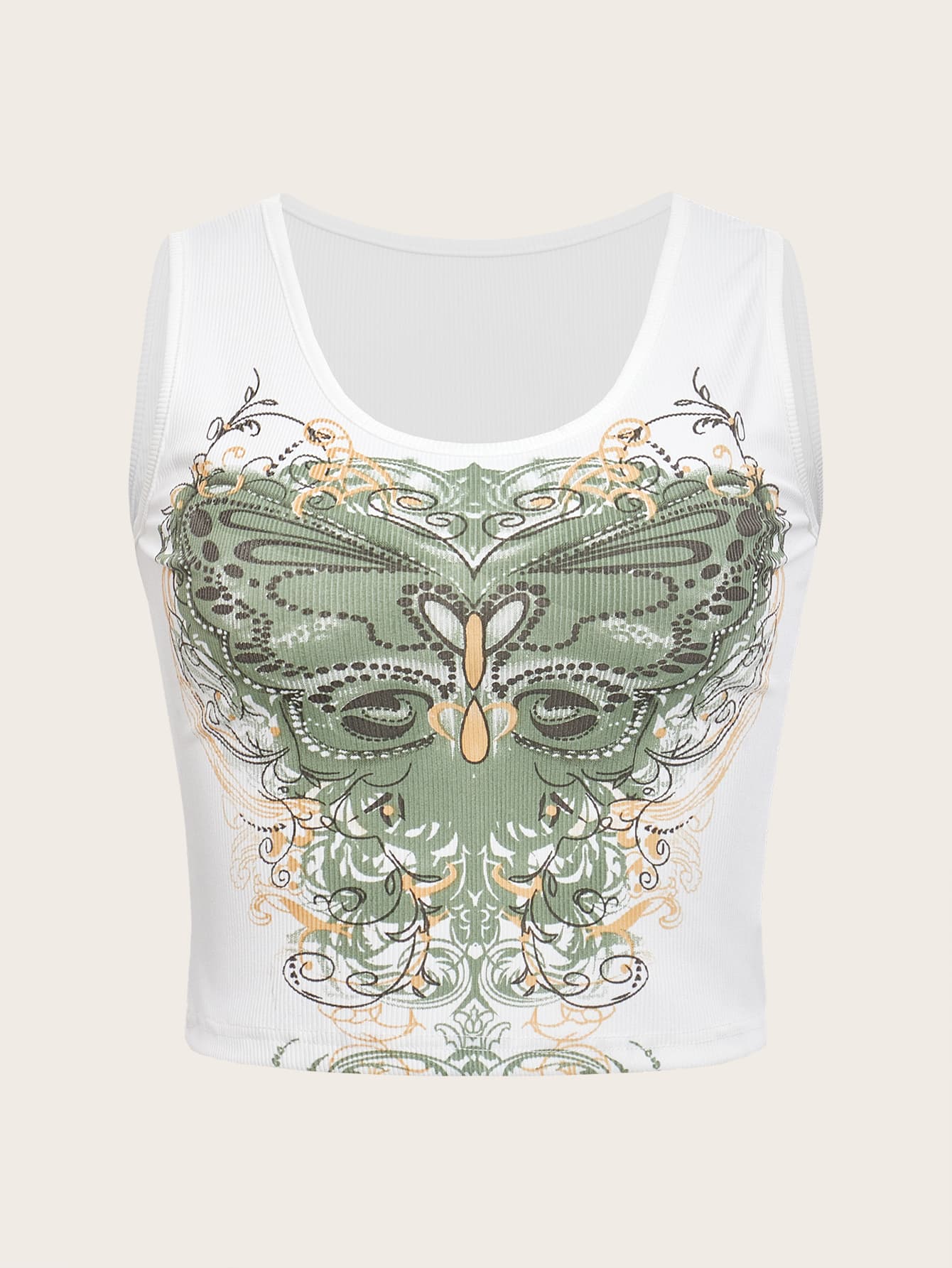 Top sans manches à imprimé papillon côtelé
