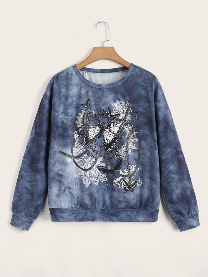 Sweat-shirt à imprimé papillon tie dye
