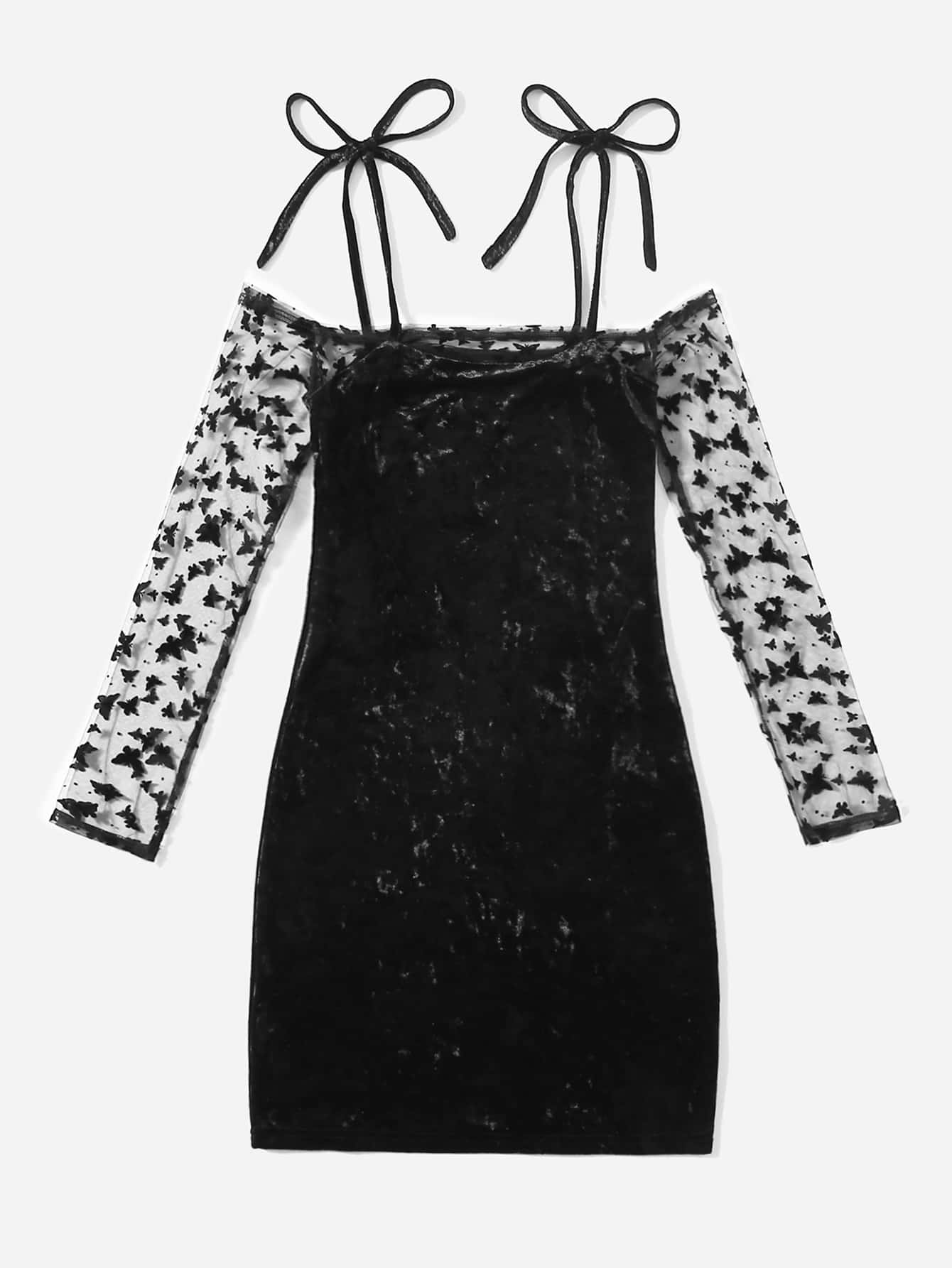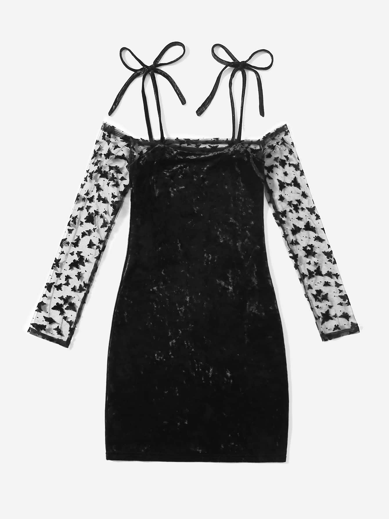 Robe à imprimé papillon en velours à nœuds