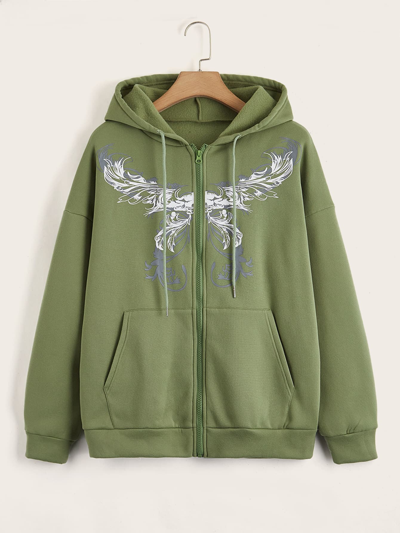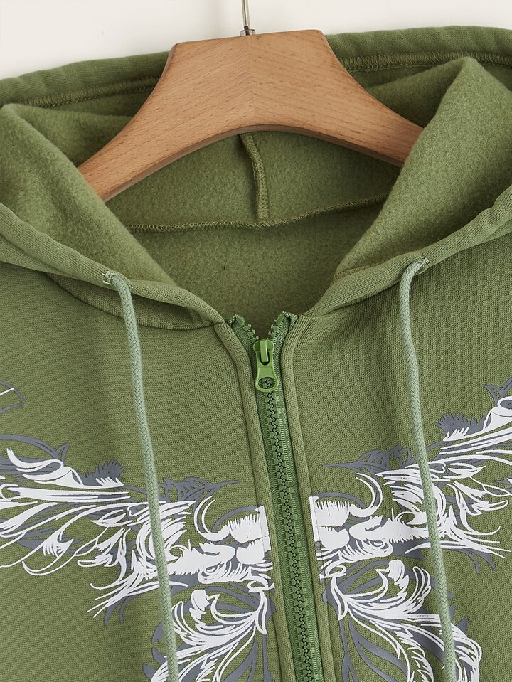 Sweat-shirt à capuche thermique à imprimé papillon zippé à cordon