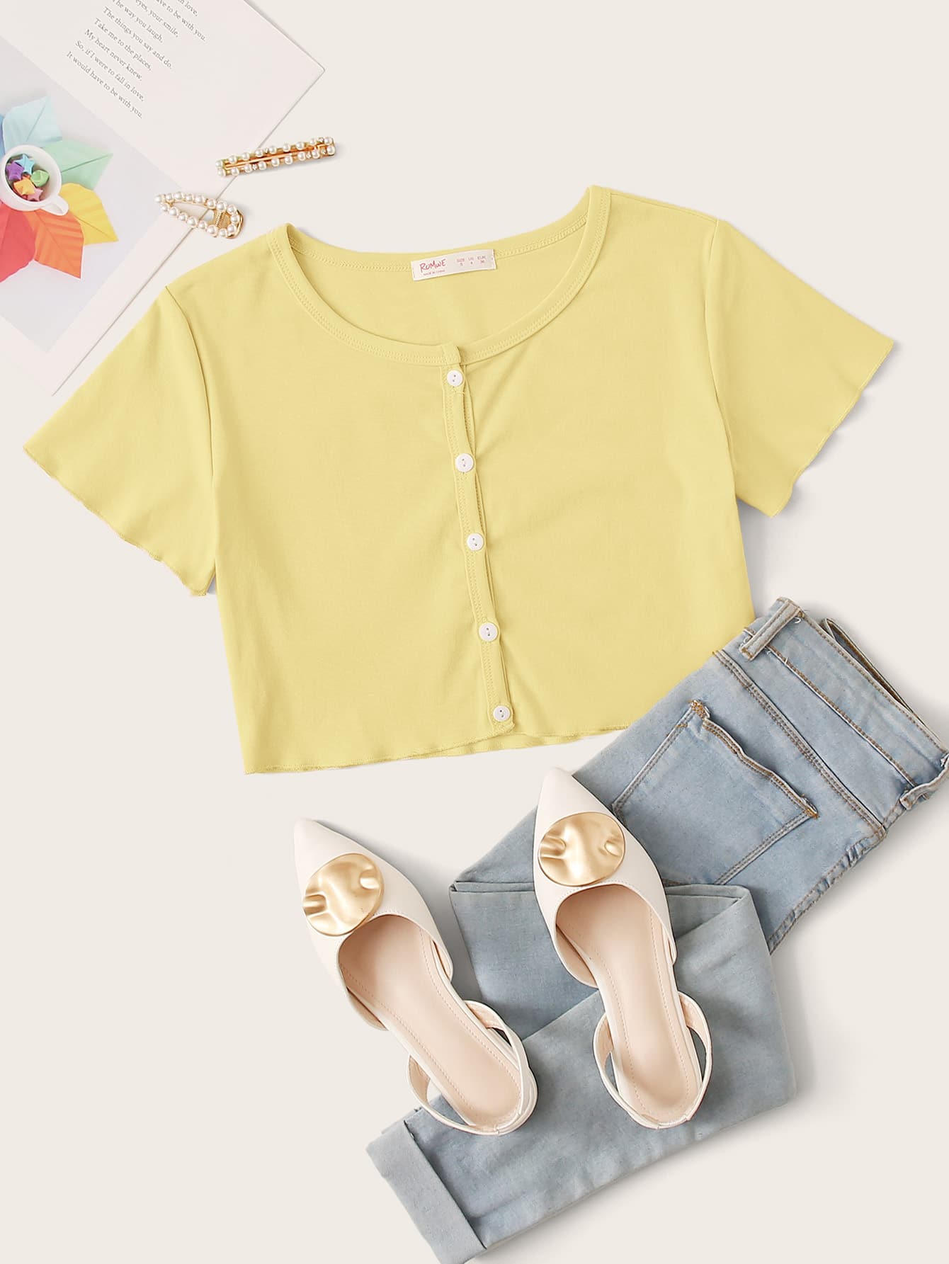 T-Shirts Jaune Avec boutons devant Casual Unicolore