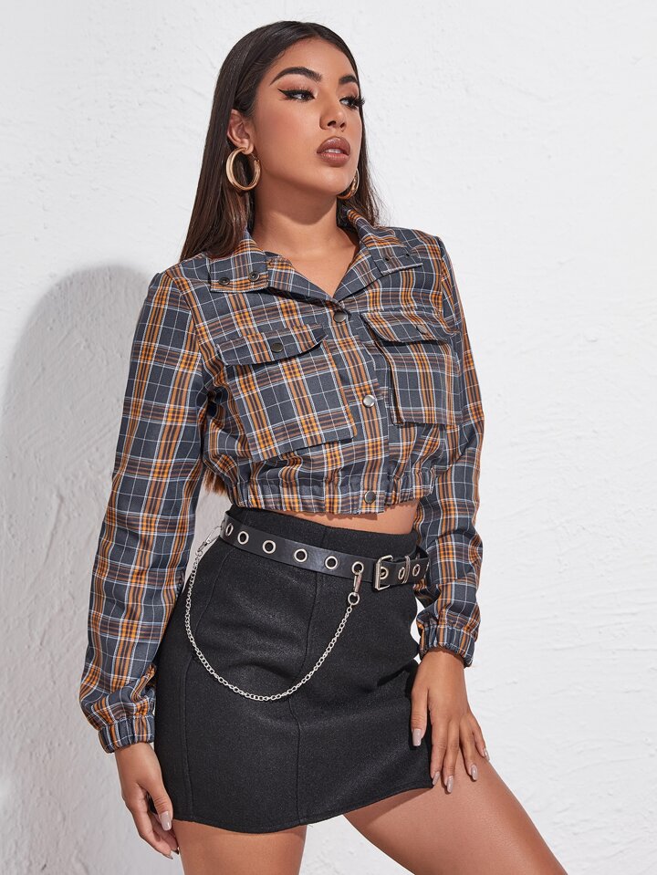 Veste courte à carreaux avec boutons et poches