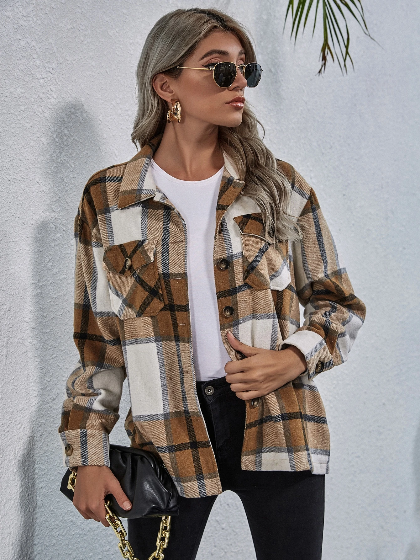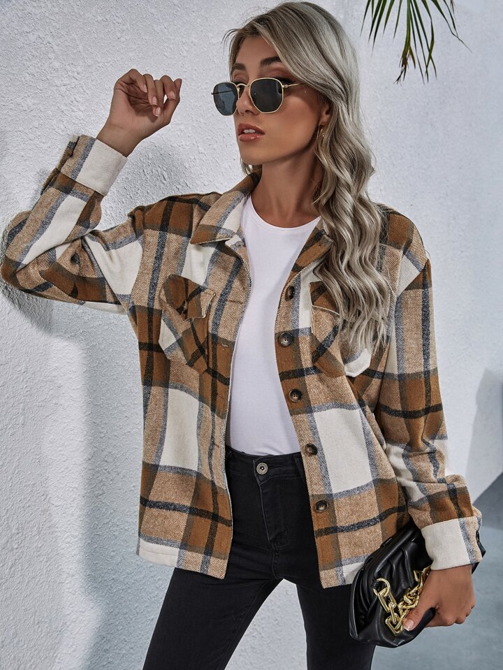 Manteau à bouton à poche à carreaux
