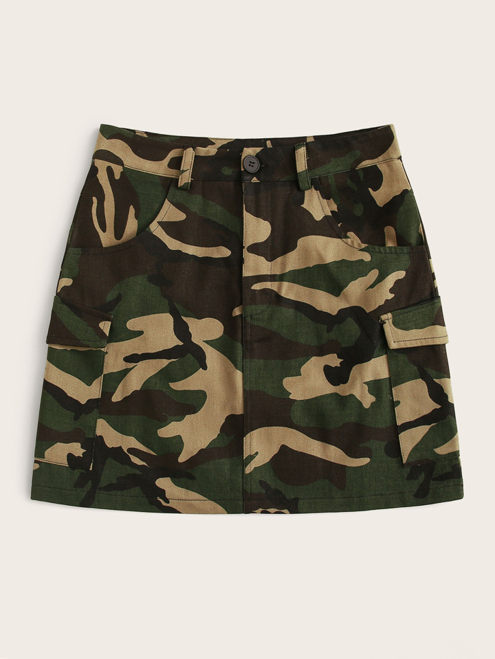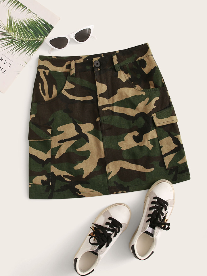 Jupe cargo à camouflage à imprimé à poche