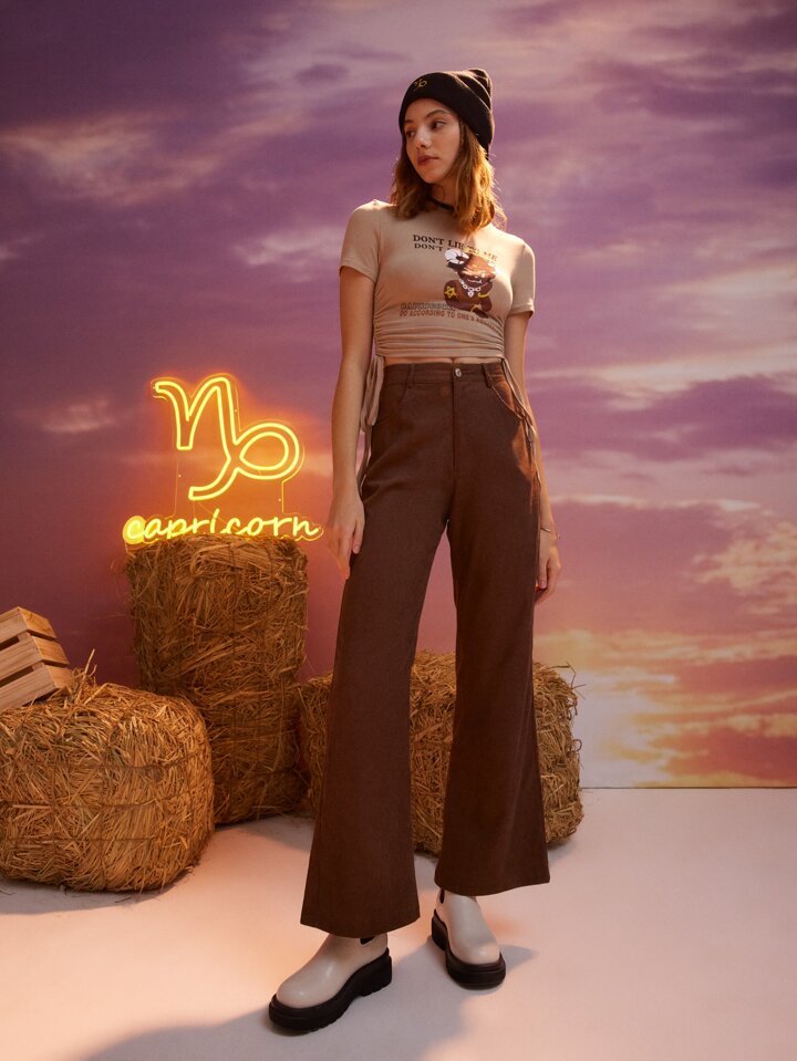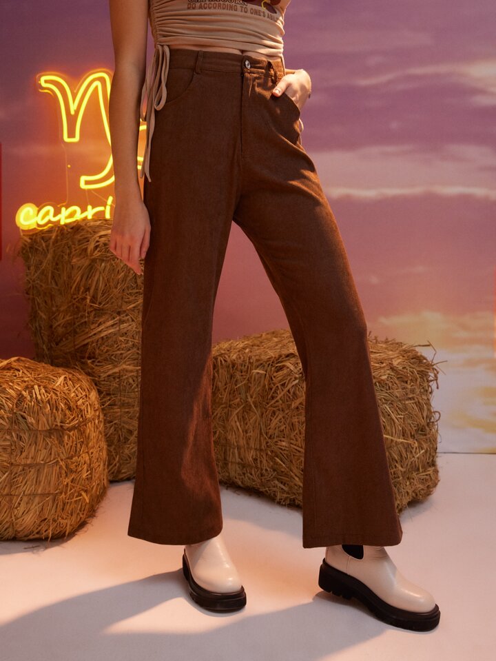 Pantalon Capricorne unicolore évasé en velours côtelé