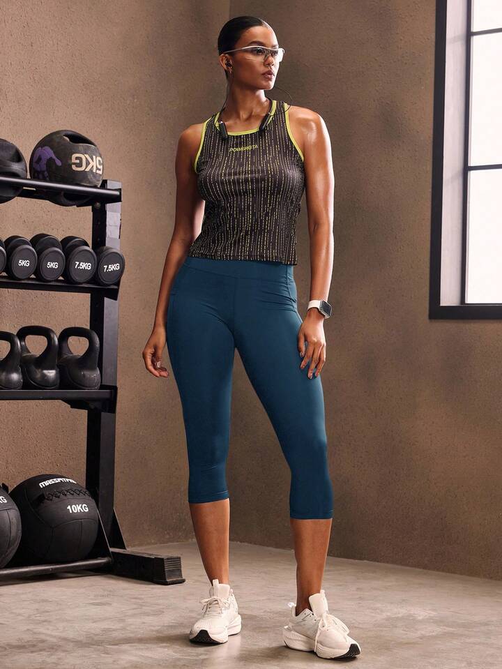 Capris Collants de sport Respirants Douceur Haute élasticité Taille large Leggings de sport avec poche pour téléphone Pantalons de yoga pour femmes