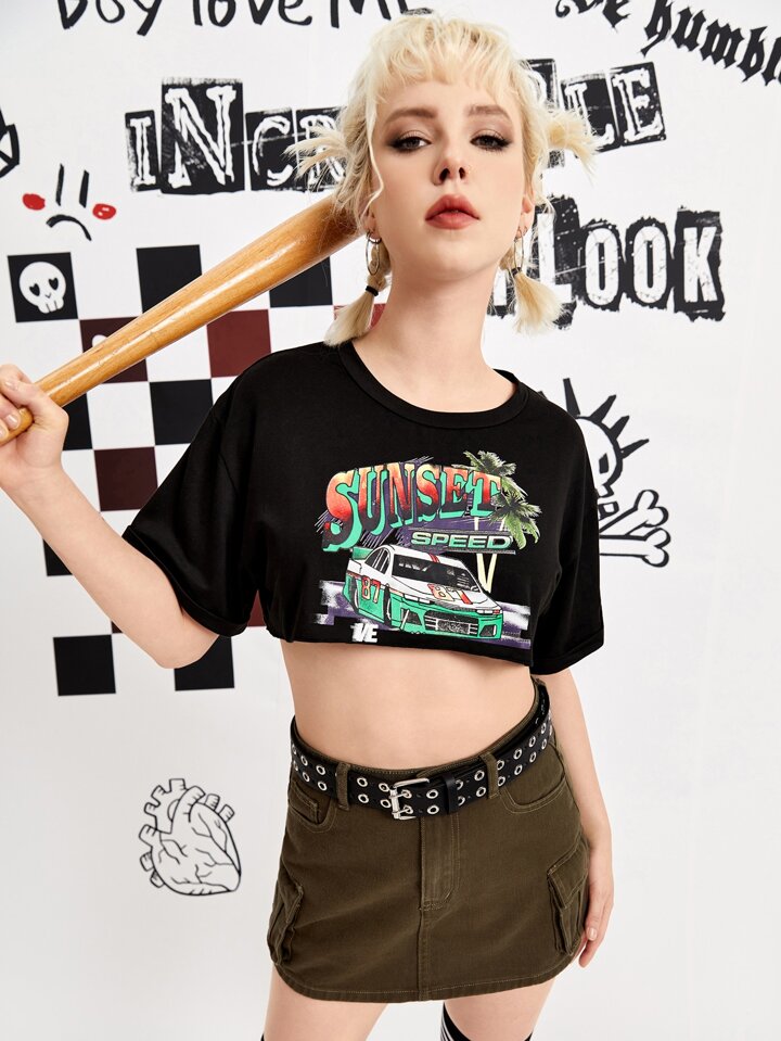 T-shirt court voiture à lettres