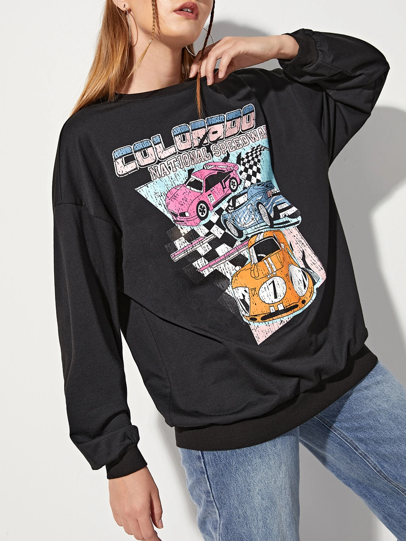 Sweat-shirt à motif voiture et lettre
