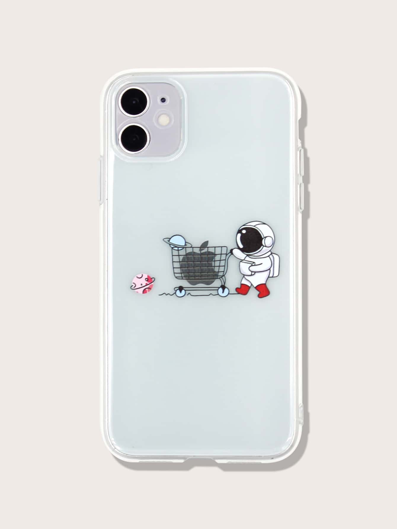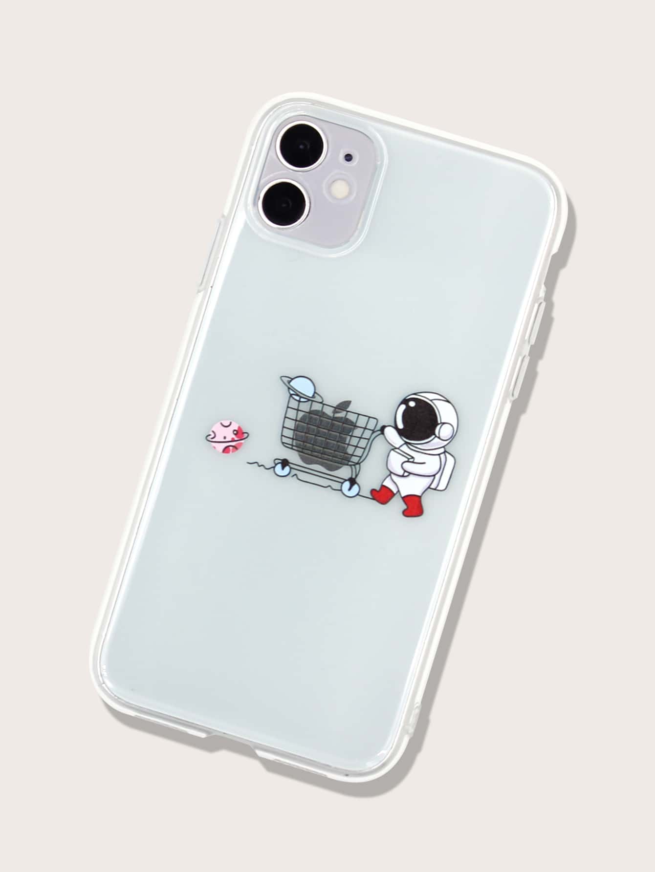 Coque à motif d'astronaute dessin animé transparent compatible avec iPhone