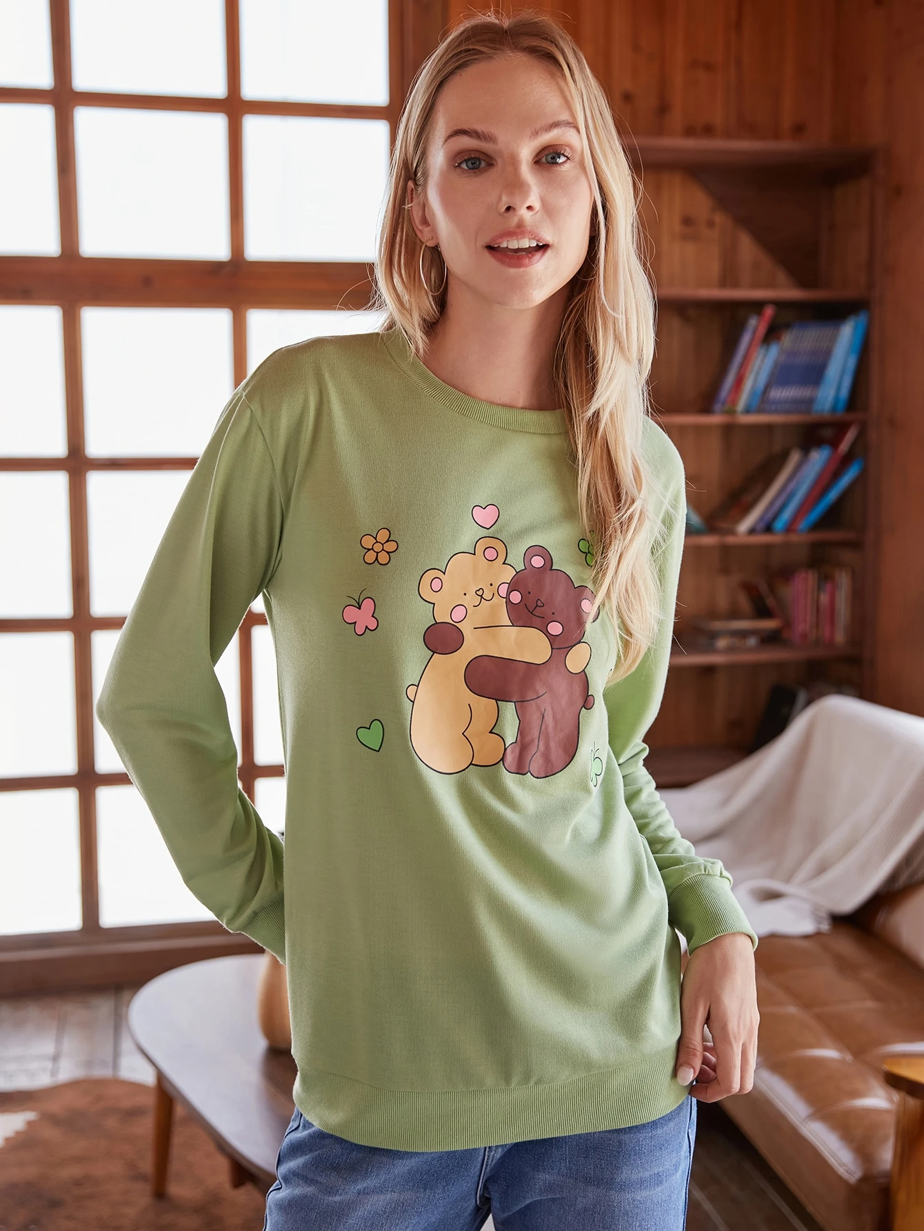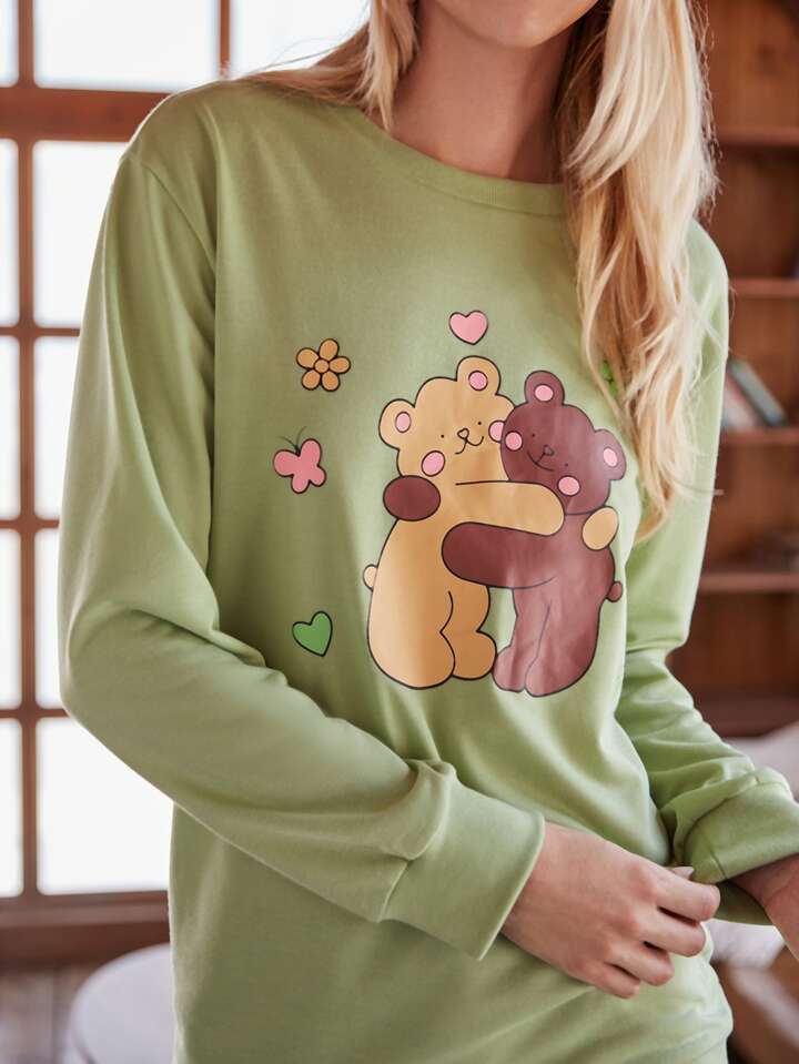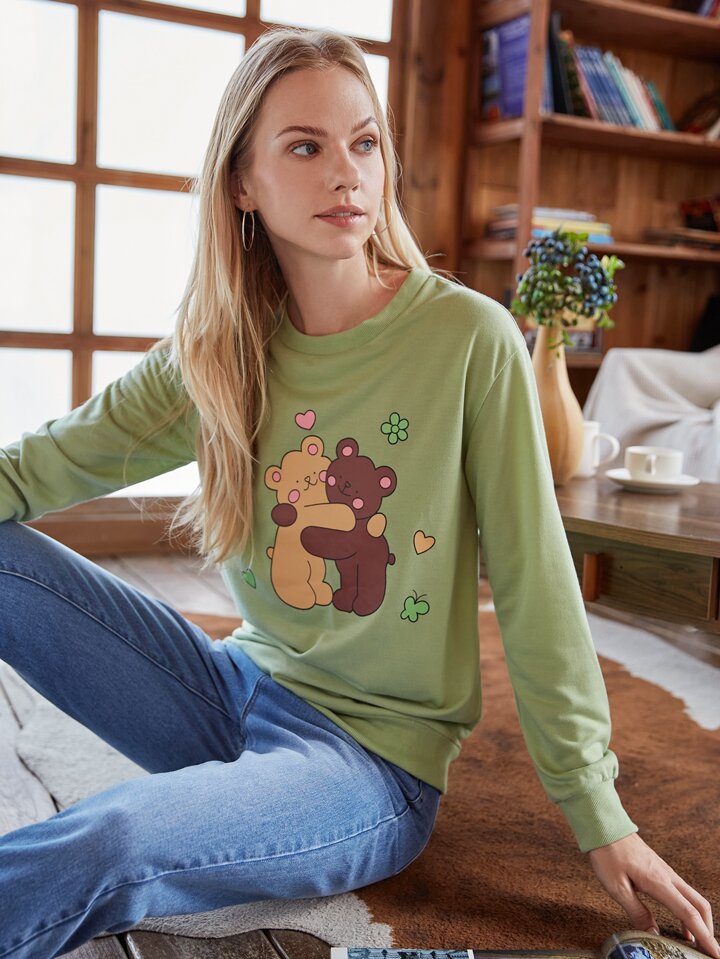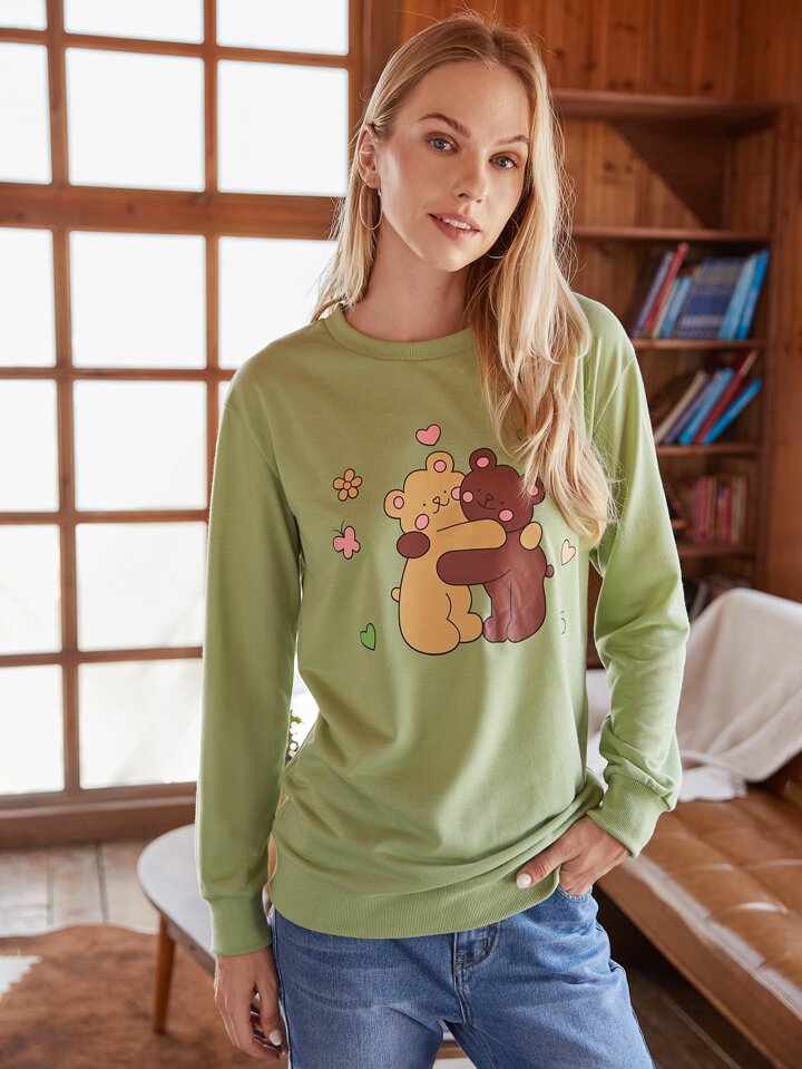 Sweat-shirt à motif d'ours dessin animé