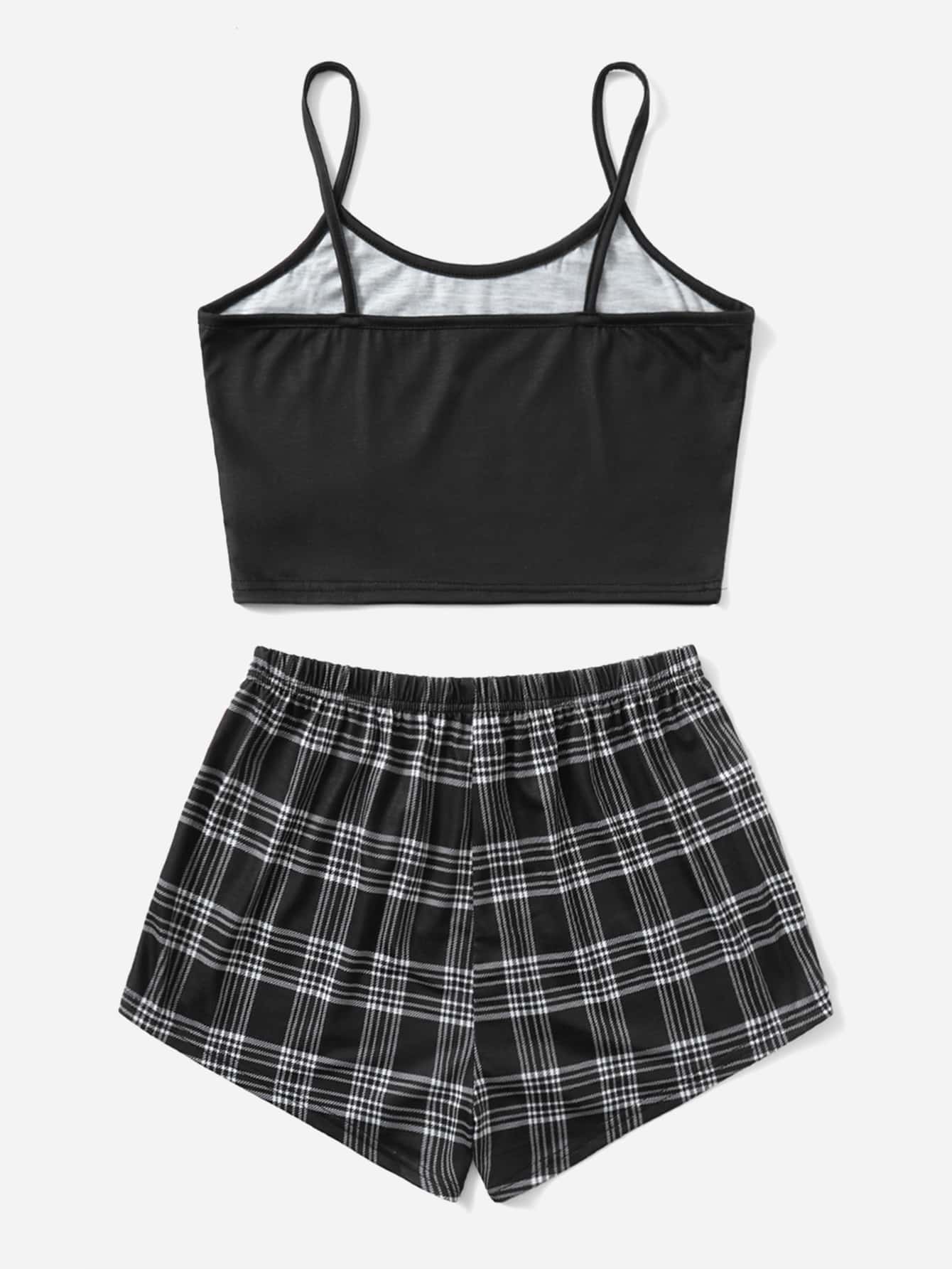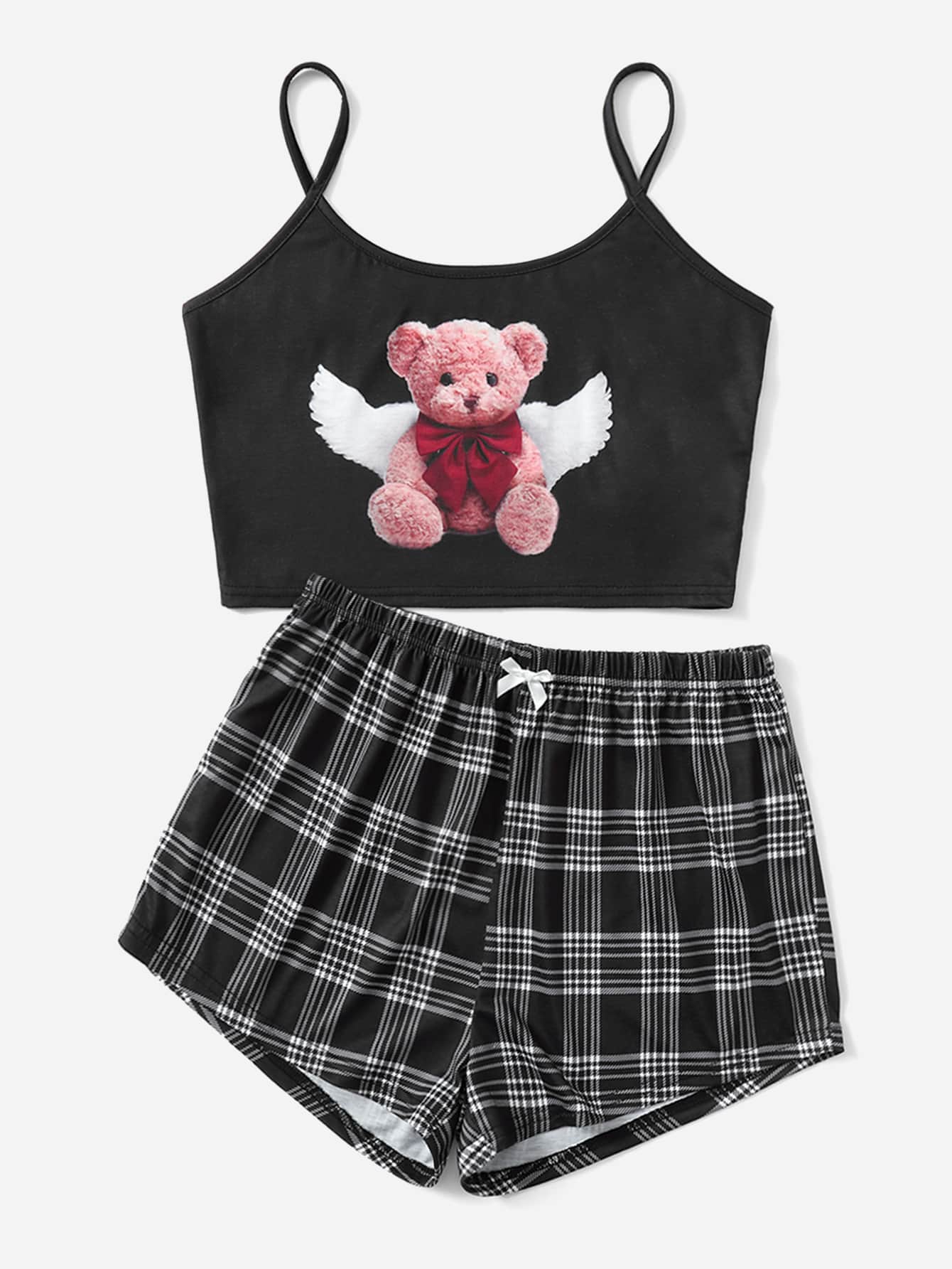 Ensemble de pyjama à motif ours dessin animé à carreaux