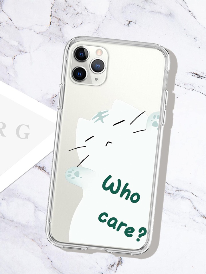 Coque à motif chat dessin animé transparent compatible avec iPhone