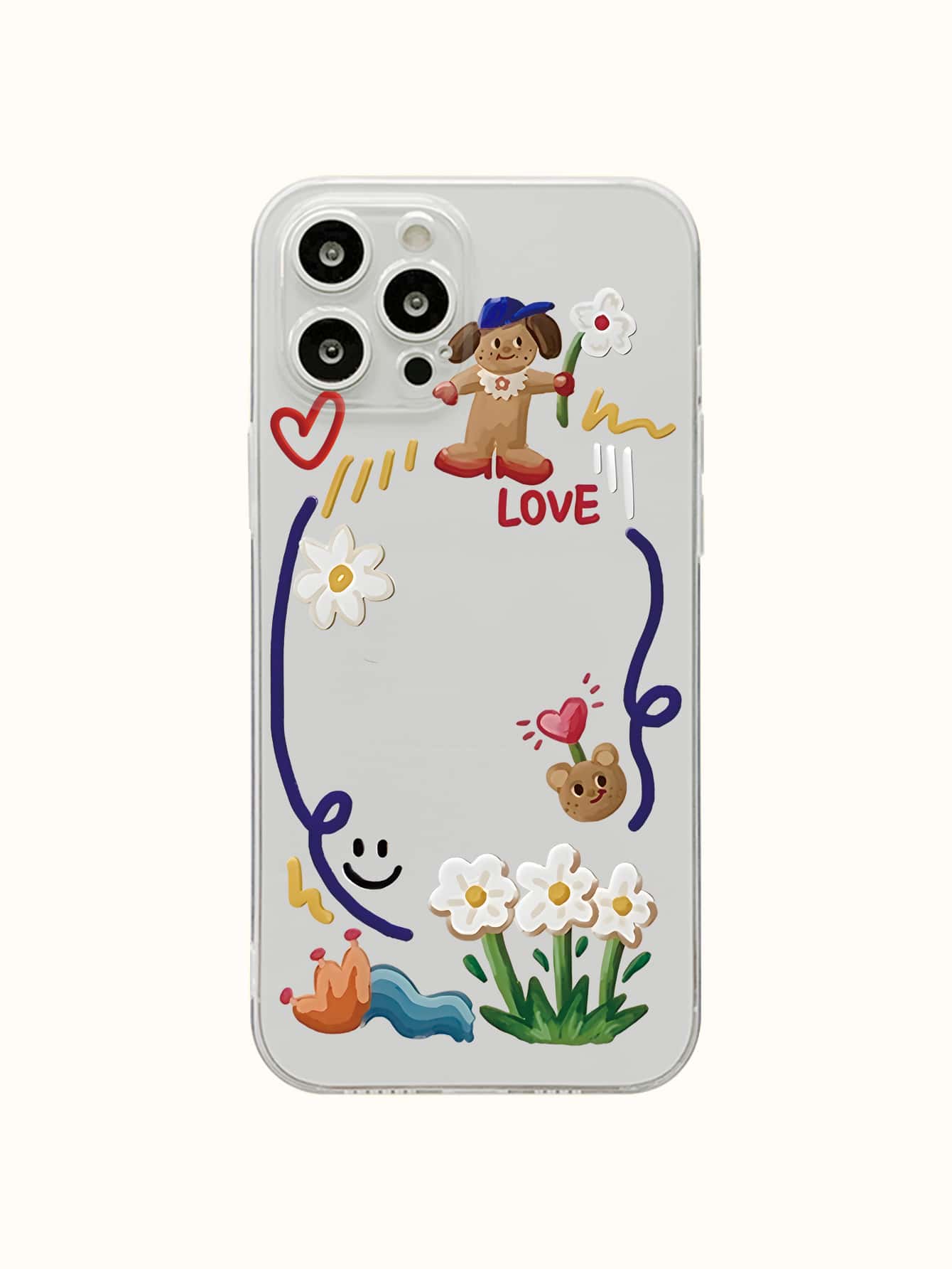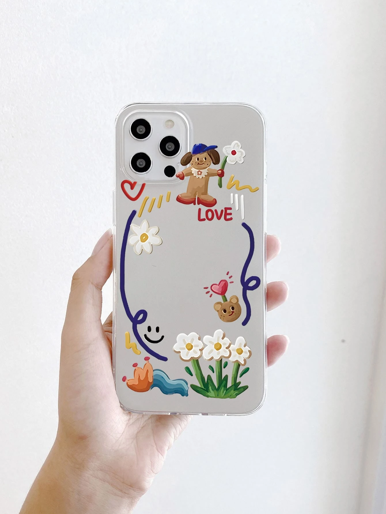 Coque compatible avec iPhone dessin animé transparent