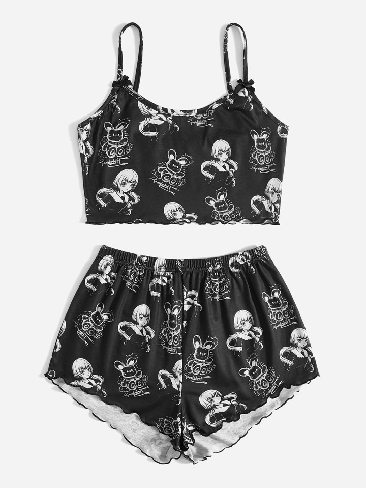 Ensemble de pyjama dessin animé à ourlet ondulé