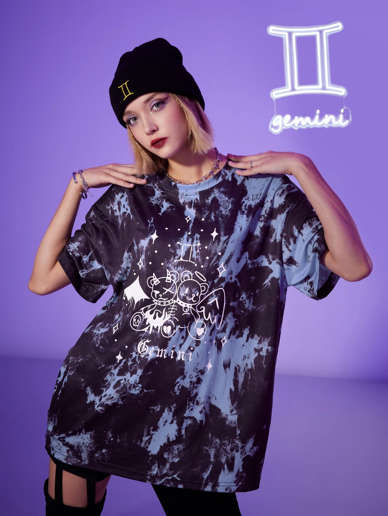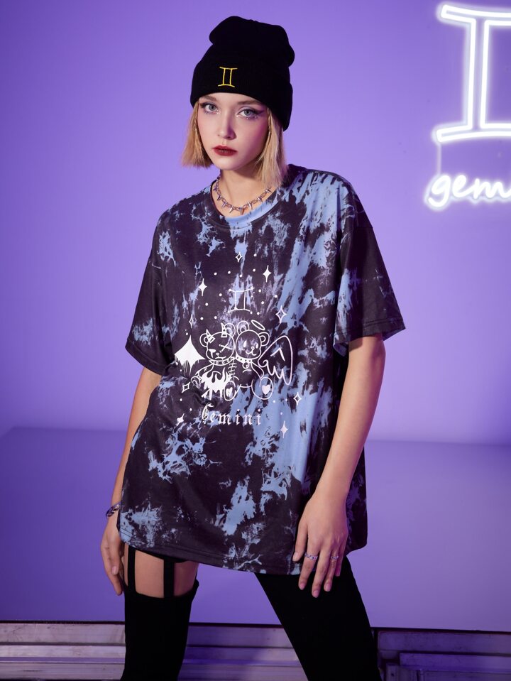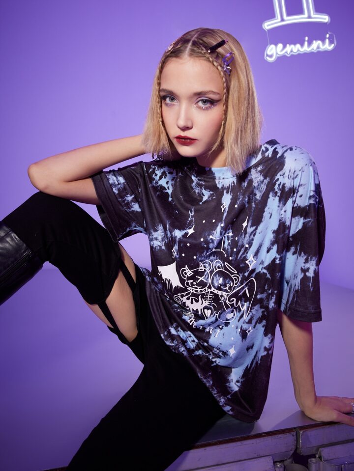 T-shirt oversize dessin animé tie dye
