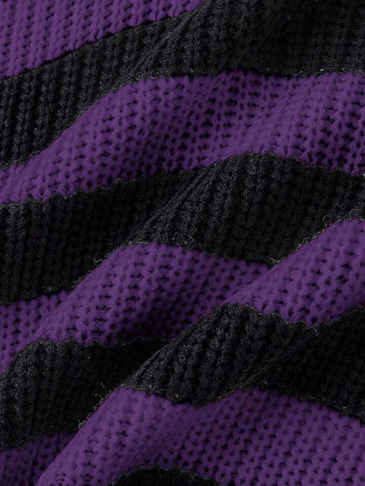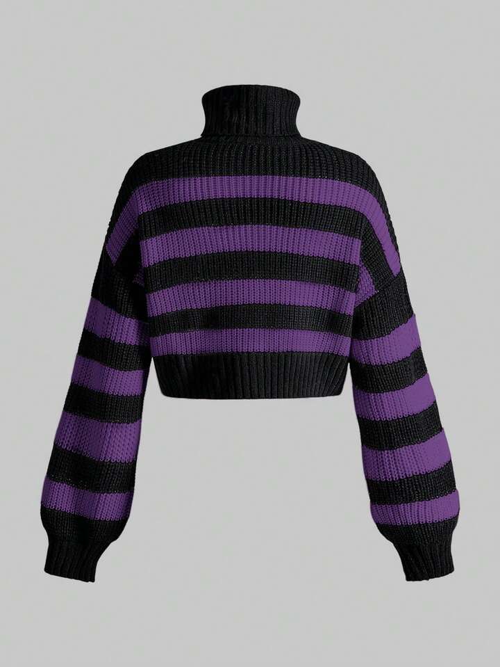 Kawaii Pull col roulé rayé avec broderie de chat noir mignon et décontracté pour filles