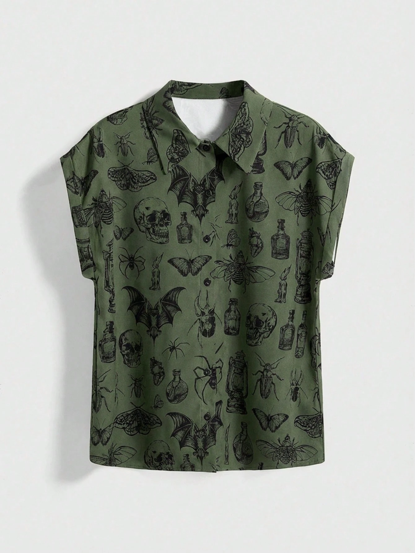 Chemise vintage à simple boutonnage style gothique décontracté avec lune et plante pour femmes
