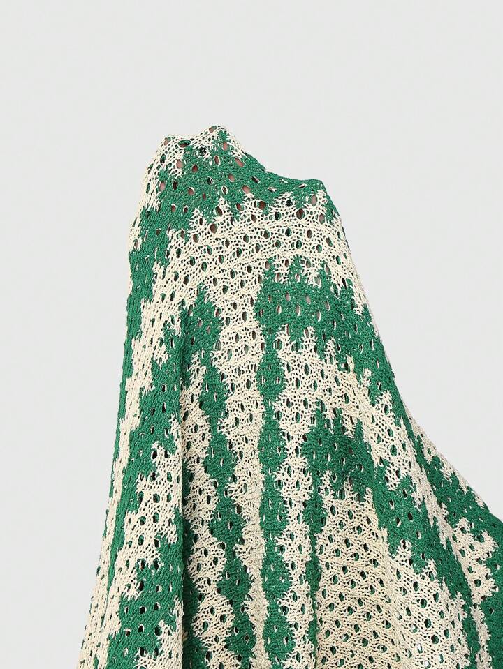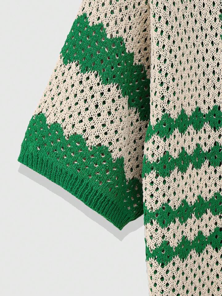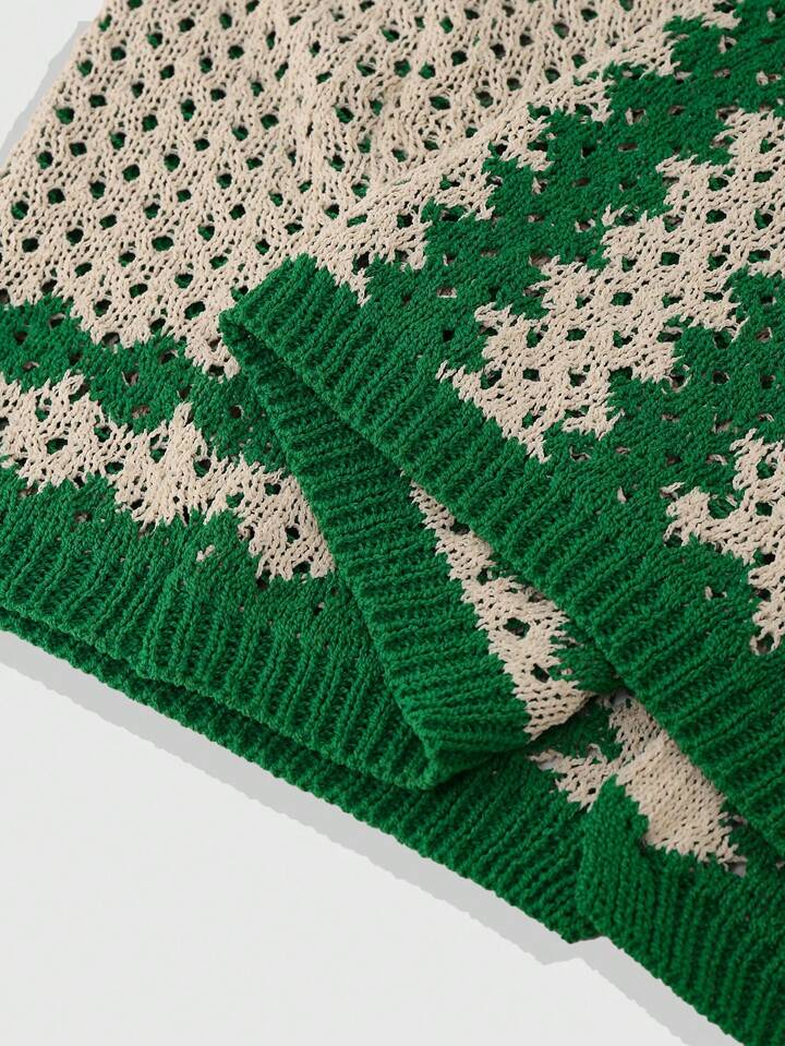 Casual Pull tricoté à motif géométrique ajouré de couleur contrastée pour homme
