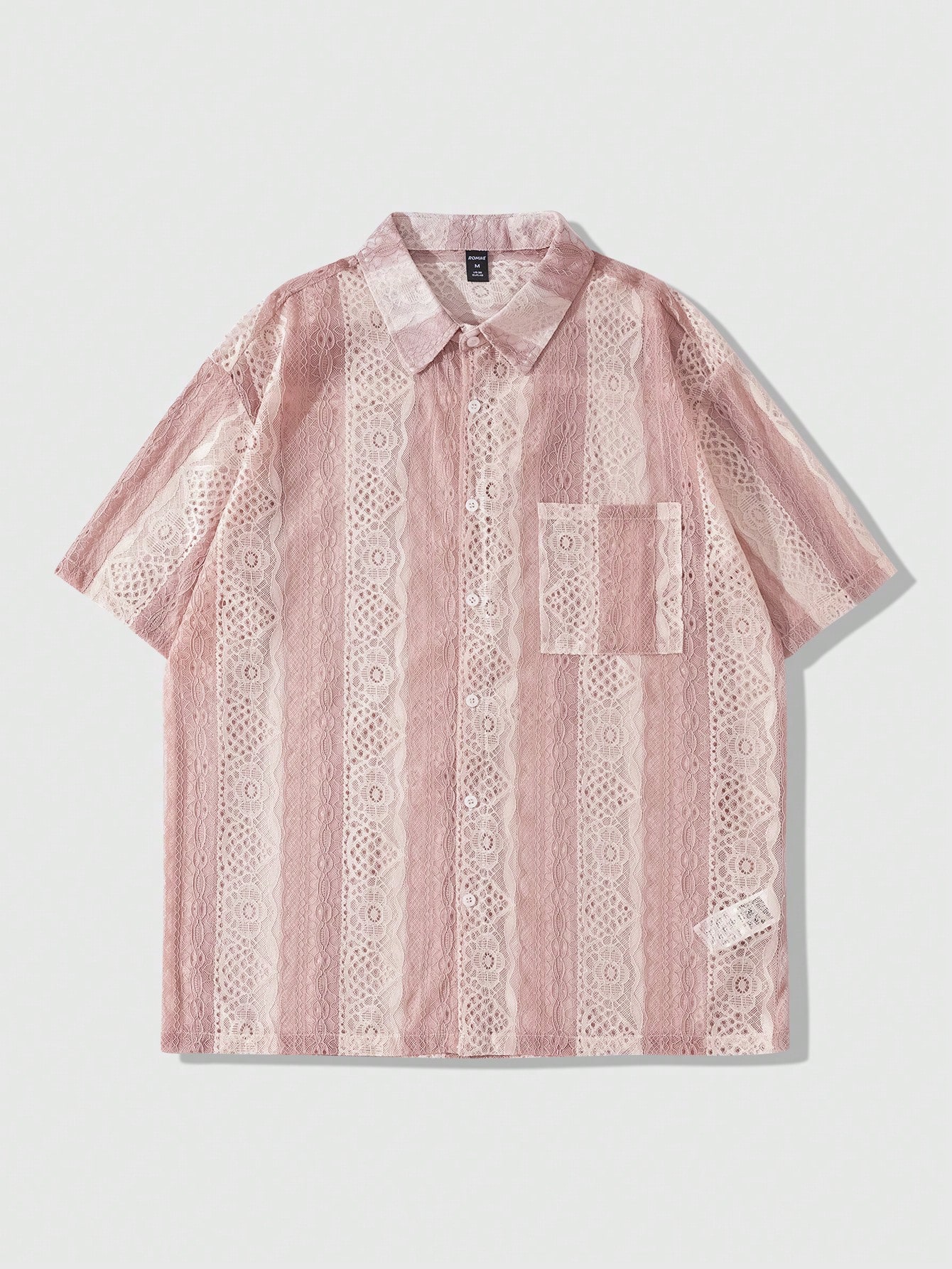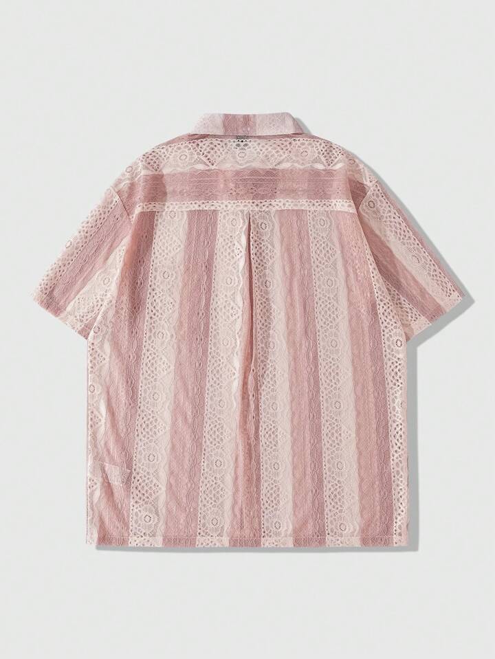 Casual Chemise ample en tissu de dentelle à rayures bicolores pour hommes
