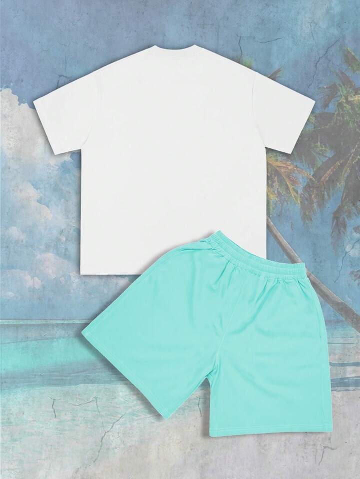 Casual Ensemble t-shirt court et short homme oversize, imprimé graphique punk. Style vintage streetwear