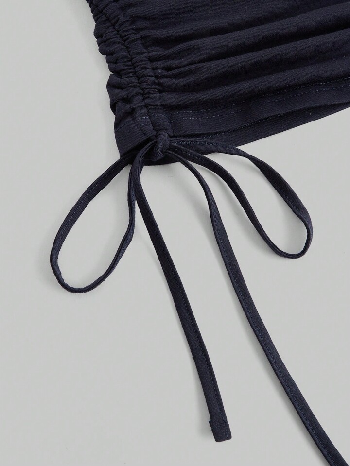 T-shirt à manches longues coupe slim, taille serrée, imprimé lettres, style sport rétro casual