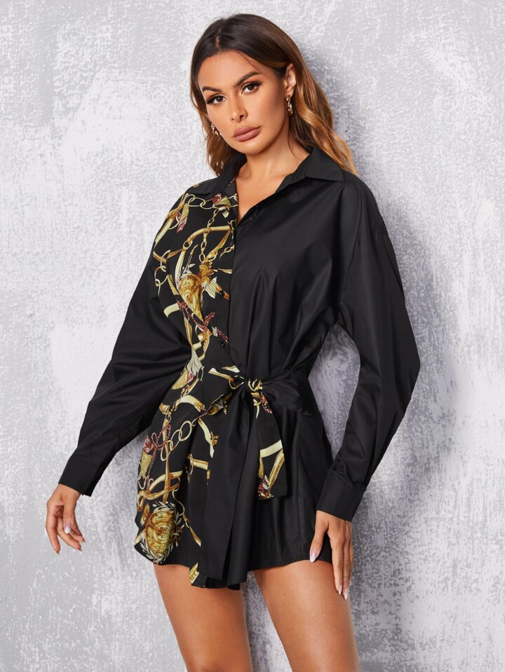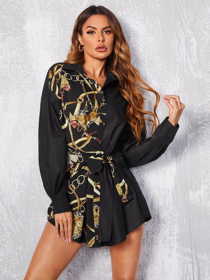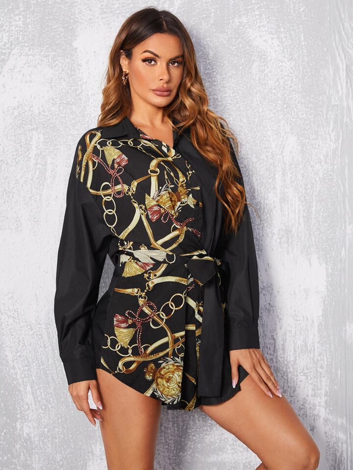 Robe chemise à imprimé chaîne ceinturé