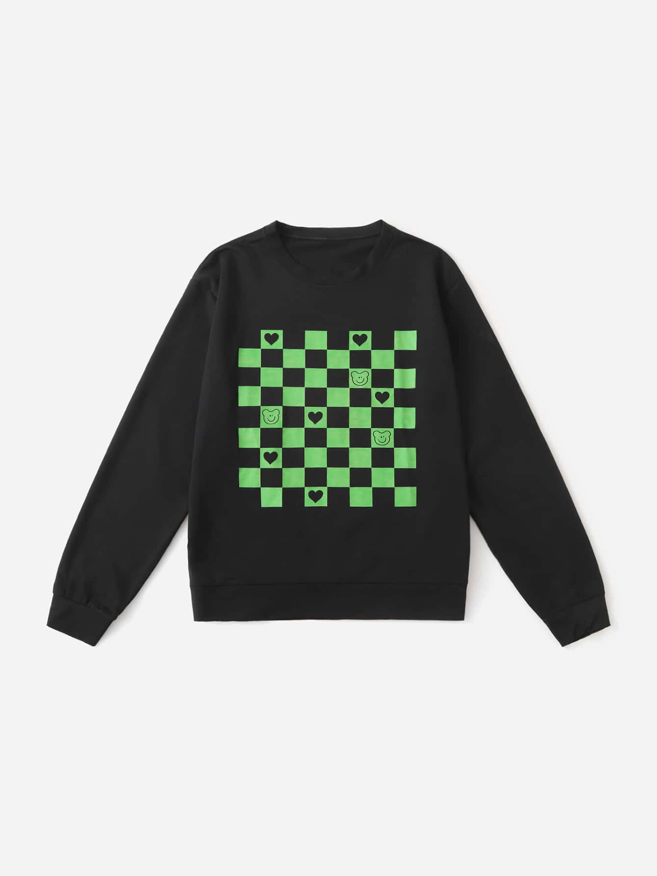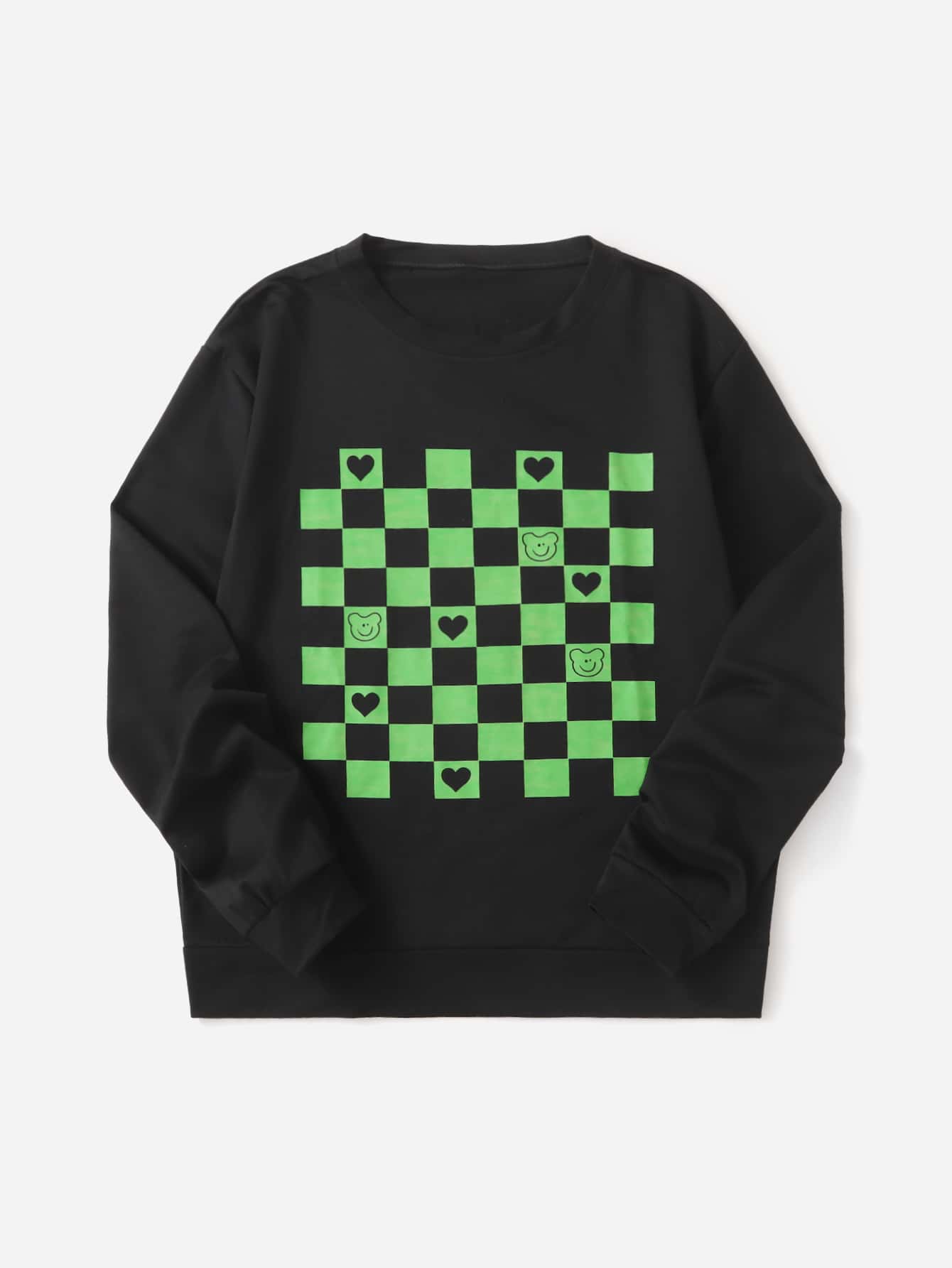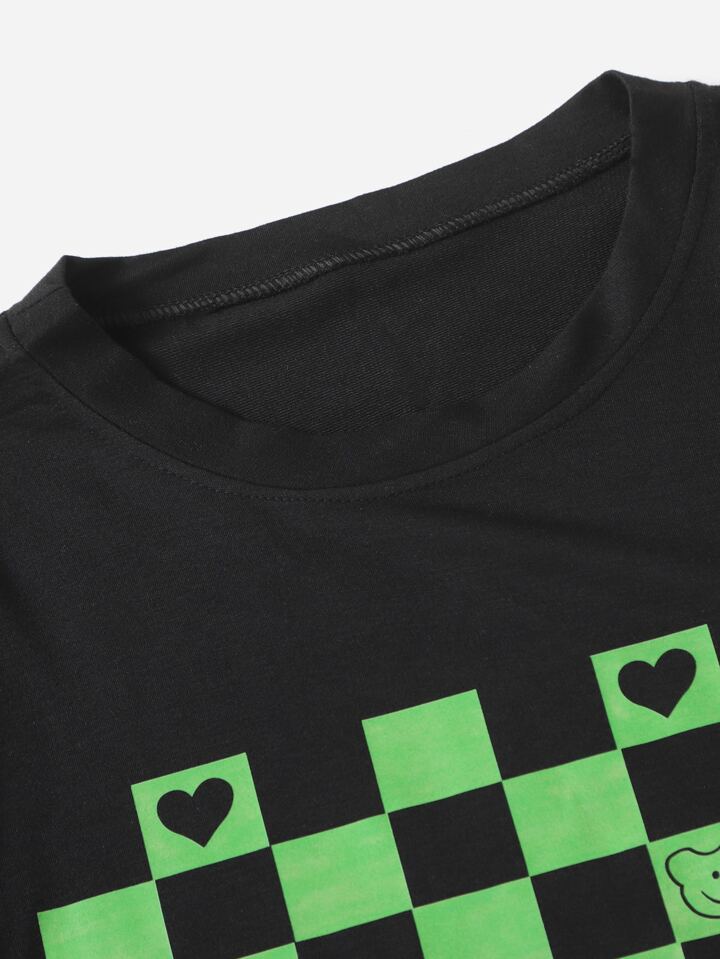 T-shirt à carreaux à motif cœur et ours dessin animé