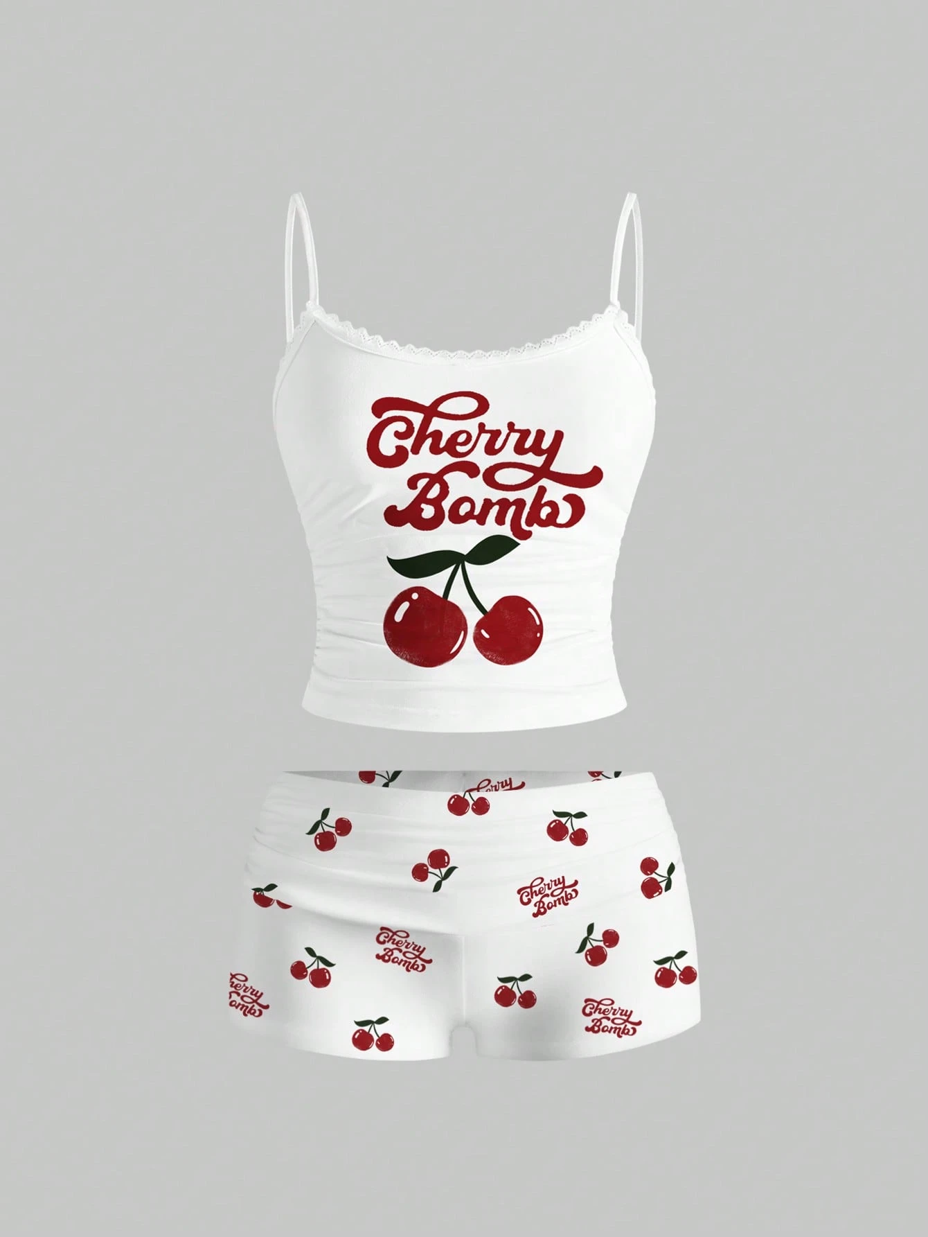 Kawaii Ensemble 2 pièces de débardeur et short sexy, style preppy, mignon et ludique avec patchwork, pour femmes