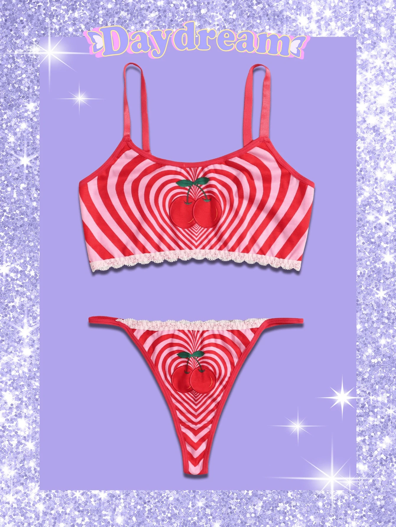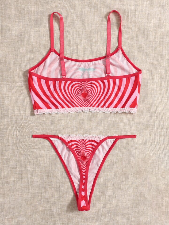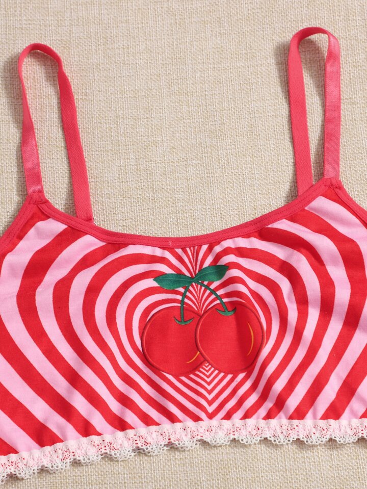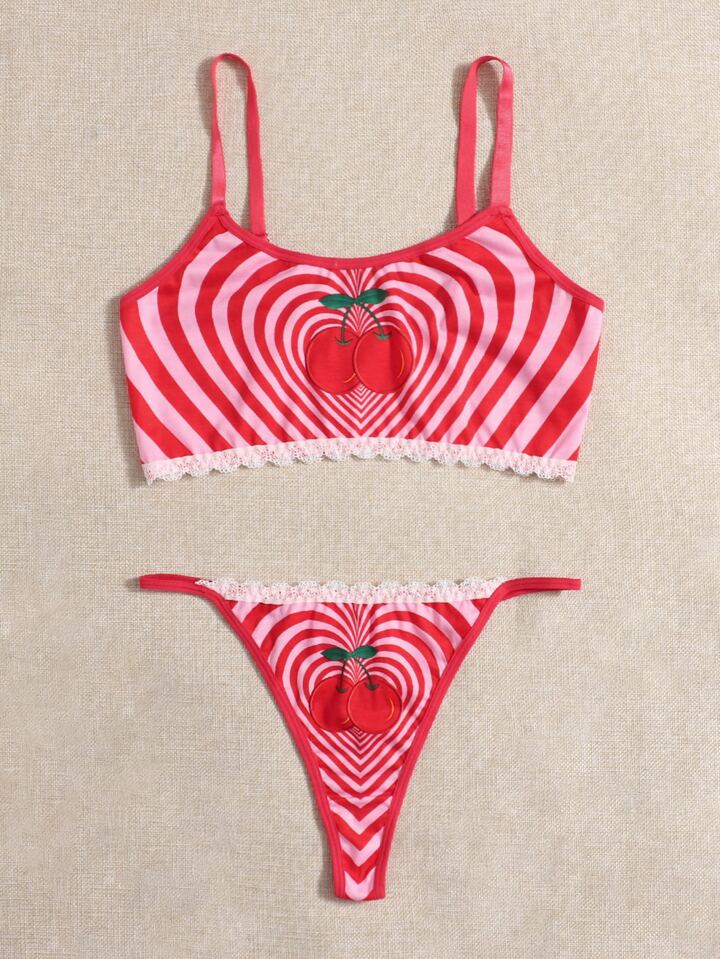 Ensemble de lingerie à imprimé cœur et cerise en dentelle