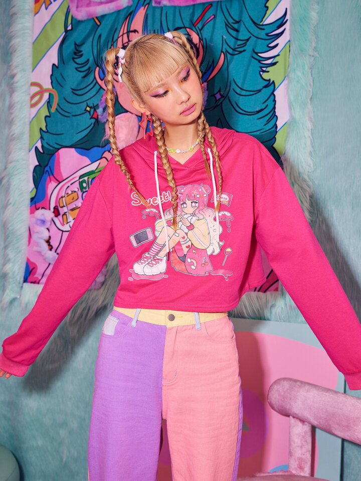 Cherry Sweat-shirt à capuche court à motif lettre et figure