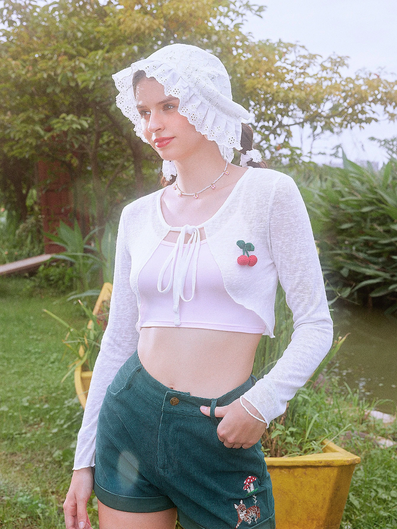 Top cerise patch à nœud