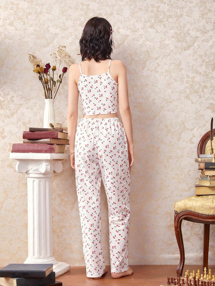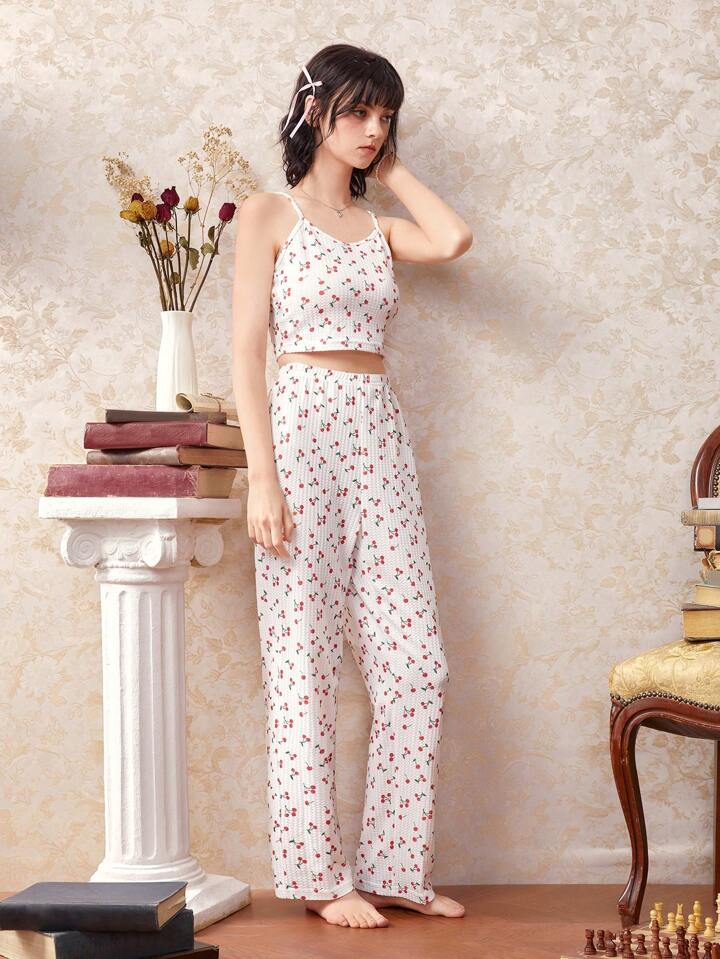 Imprimé Cerise Top À Fines Brides & Pantalon Ensemble De Pyjama
