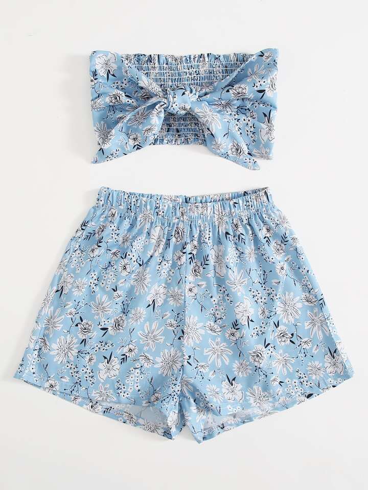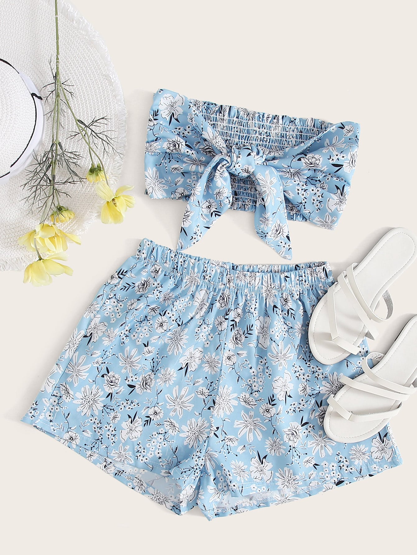 En Mousseline De Soie Fleuri À Nœud Top Bandeau & Short
